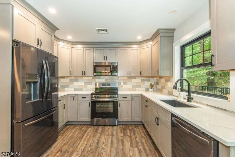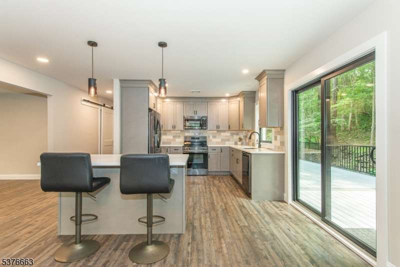 Experience Luxury Living in this fully renovated home that feels like New Construction. offering over 5500 plus square feet, this private county estate is ideal for those seeking flexible space with modern finishes. This Spacious Home featues 5 plus Bedrooms, 5 Full, 1 1/2 bath with high-end fixtures and finishings throughout. As soon as you enter this home you can't miss the attention to detail with the stone work that lines the walls of the hallway. The open kitchen flows seamlessly into multiple living areas and the outdoor deck, perfect for entertaining. The private primary suite (third floor) offers an incredible spa like shower, and a bedroom size closet to use your imagination. Additional highlights include areas for an office, gym, playroom, and workshop. Multiple Laundry Rooms on the ground and second floors. The multiple decks provide stunning views of the surrounding wooded privacy. A three car detached garage is perfect for storage, work or whatever you can imagine. Outdoors, enjoy your own private oasis with a tranquil pond and waterfall complemented by a custom deck and seating area, perfect for relaxing or entertaining in complete privacy Every detail has been thoughtfully designed to create a peaceful and luxurious living experience. This is a must see. Taxes to be determined. Newton Zip Code