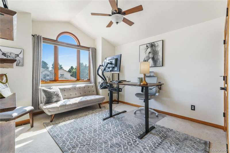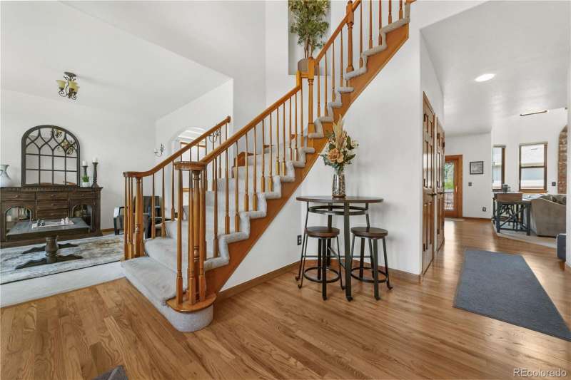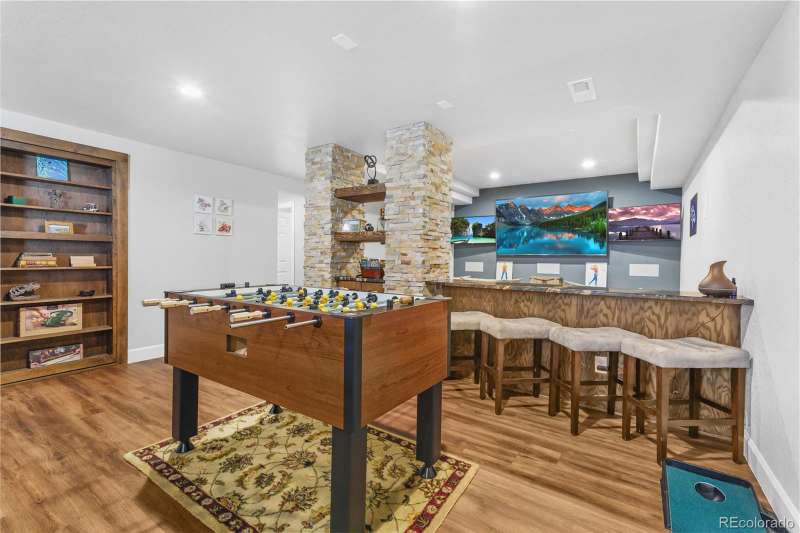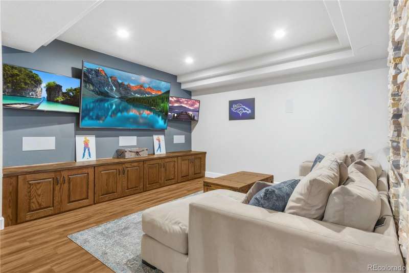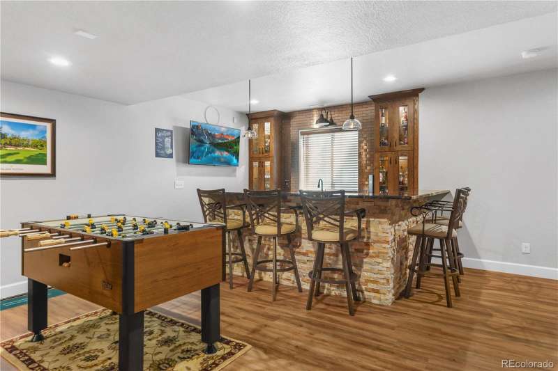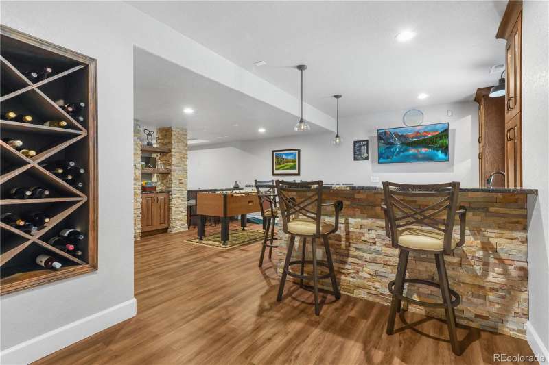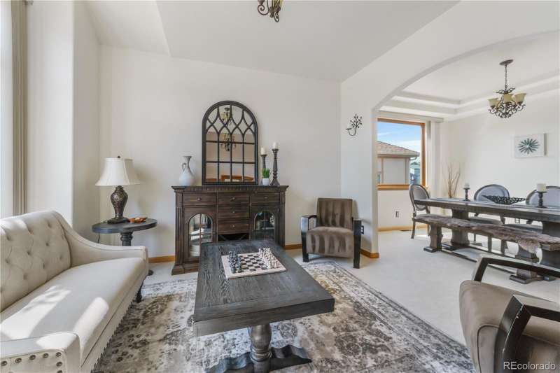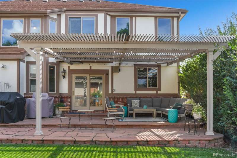 Nestled in a highly sought-after Arvada neighborhood just minutes from the light rail, this meticulously maintained home where designer touches meet everyday comfort. A dramatic two-story foyer with a sweeping curved staircase sets the tone. Entertain in style in the formal living room or host unforgettable dinners in the formal dining room. The heart of the home is the two-story great room, highlighted by a cozy gas fireplace and wall of windows. The adjacent chef's kitchen offers a gas range, newer countertops, bar seating, a walk-in pantry, and access to a private patioperfect for grilling or relaxing under the stars. A main floor office with French doors and built-in bookshelves provides the ideal work-from-home retreat. Additional main floor features include a powder room and laundry room. Prepare to be wowed by the beautifully finished basement, a true entertainer's paradise. Complete with a full wet bar (dishwasher, beverage fridge, ice maker, disposal), custom wine storage, game area, and home theater with three mounted TVs, built-in speakers, and subwoofer. A secret bookshelf to storage area. A spacious bedroom (currently a home gym) with a walk-in closet and a stylish three-quarter bath completes this level. Upstairs, the expansive primary suite offers a private retreat with a jacuzzi tub, steam shower, heated floors, dual vanities, heated town rack, linen storage, and a generous walk-in closet. Three additional bedrooms provide space for family, guests, or office useeach featuring great closets and easy access to a full bath. Step outside to the landscaped yard featuring an electric louvered pergolaperfect for year-round outdoor dining or unwinding in the shade. Fabulous location with close proximity to Arvada's trails, golf courses, and vibrant local amenities. **Seller is offering 1% of the sale price towards the buyer's closing costs. **