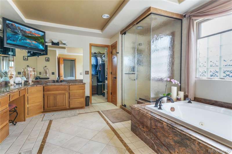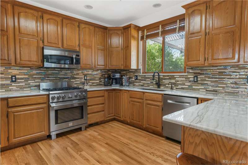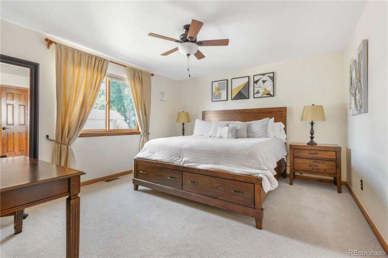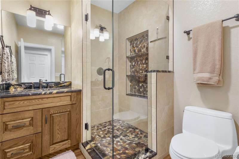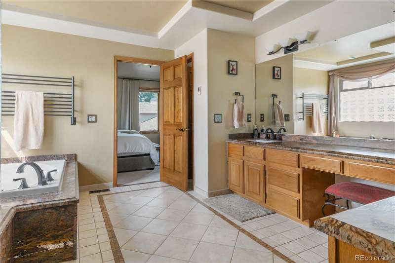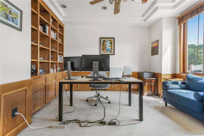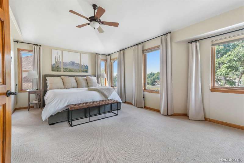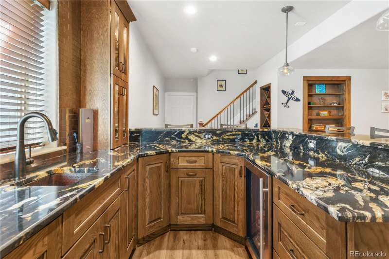Nestled in a highly sought-after Arvada neighborhood just minutes from the light rail, this meticulously maintained home where designer touches meet everyday comfort. A dramatic two-story foyer with a sweeping curved staircase sets the tone. Entertain in style in the formal living room or host unforgettable dinners in the formal dining room. The heart of the home is the two-story great room, highlighted by a cozy gas fireplace and wall of windows. The adjacent chef's kitchen offers a gas range, newer countertops, bar seating, a walk-in pantry, and access to a private patioperfect for grilling or relaxing under the stars. A main floor office with French doors and built-in bookshelves provides the ideal work-from-home retreat. Additional main floor features include a powder room and laundry room. Prepare to be wowed by the beautifully finished basement, a true entertainer's paradise. Complete with a full wet bar (dishwasher, beverage fridge, ice maker, disposal), custom wine storage, game area, and home theater with three mounted TVs, built-in speakers, and subwoofer. A secret bookshelf to storage area. A spacious bedroom (currently a home gym) with a walk-in closet and a stylish three-quarter bath completes this level. Upstairs, the expansive primary suite offers a private retreat with a jacuzzi tub, steam shower, heated floors, dual vanities, heated town rack, linen storage, and a generous walk-in closet. Three additional bedrooms provide space for family, guests, or office useeach featuring great closets and easy access to a full bath. Step outside to the landscaped yard featuring an electric louvered pergolaperfect for year-round outdoor dining or unwinding in the shade. Fabulous location with close proximity to Arvada's trails, golf courses, and vibrant local amenities. **Seller is offering 1% of the sale price towards the buyer's closing costs. **