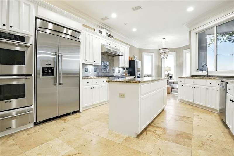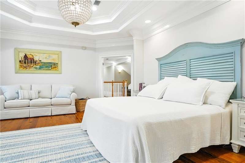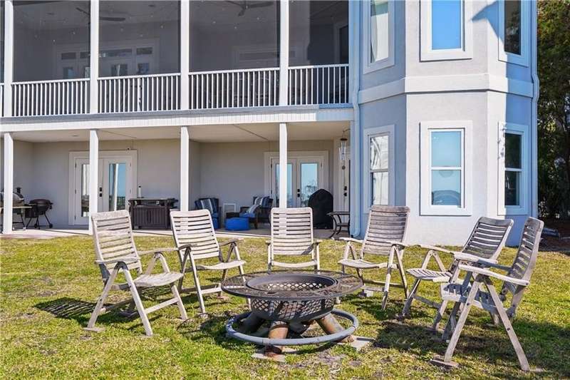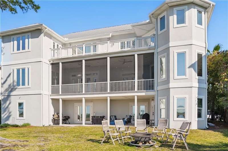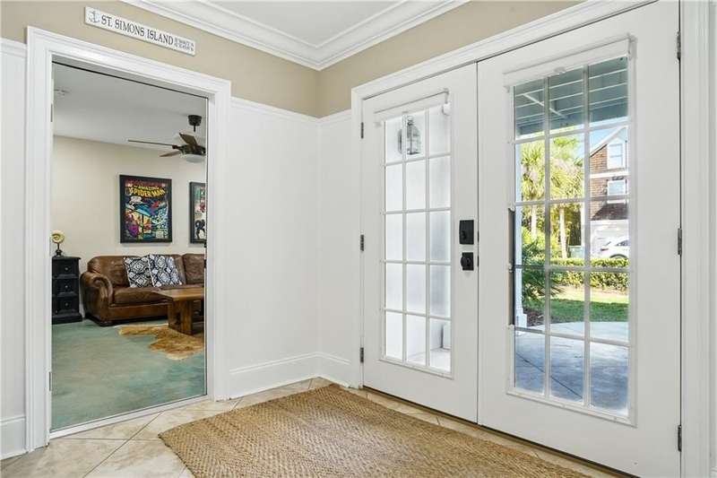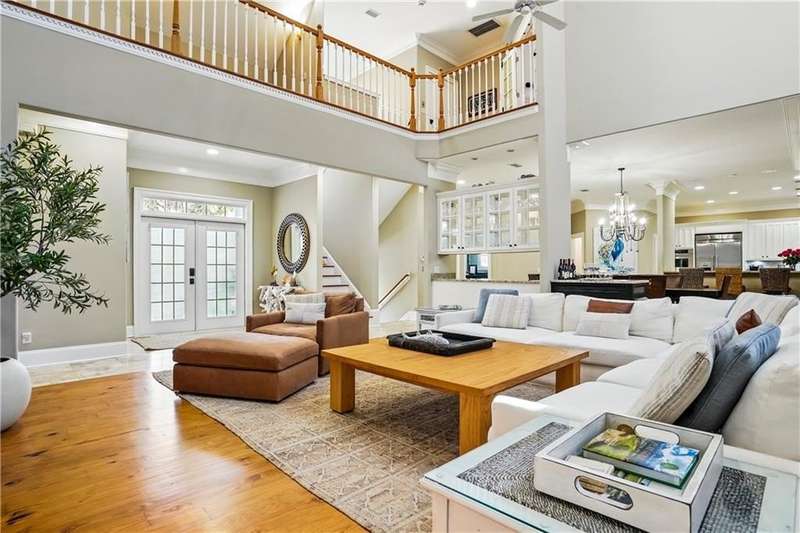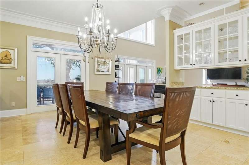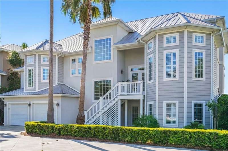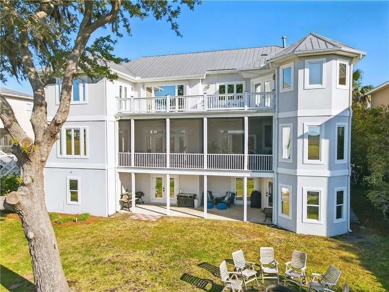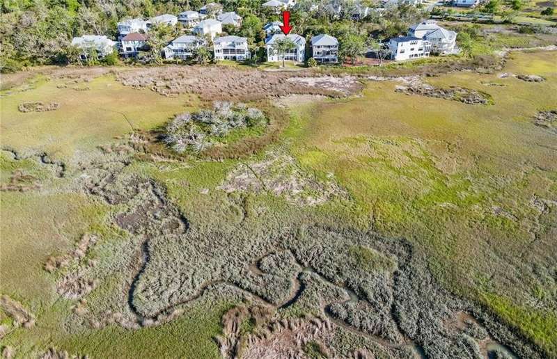 Awaken each morning to the stunning spectacle of a breathtaking sunrise over the serene marsh, with captivating views of Sea Island and Village Creek from this exquisite 5-bedroom, 6.5-bathroom home, thoughtfully designed for both relaxation and entertaining in the coveted gated community of Sunrise Point. The impeccably maintained main level showcases a grand great room with soaring 20-foot ceilings, creating an inviting atmosphere. The open floor plan seamlessly connects the dining area to a spacious kitchen adorned with elegant hardwood and travertine floors. A chef's dream, the kitchen features top-of-the-line stainless steel Thermador and Bosch appliances, a generous center island, striking granite countertops, and a cozy breakfast nook, all of which flow effortlessly onto a large screened porch that offers panoramic marsh views. On the main level, you'll also find three generously sized guest bedrooms and two and a half well-appointed baths. Ascend to the third floor to discover two luxurious private bedroom suites. The expansive primary suite serves as a personal retreat, complete with his and her baths, each featuring walk-in closets and a cozy fireplace for those cooler evenings. Both suites provide access to a private deck that showcases stunning marsh vistas. The property is complemented by a spacious garage accommodating four vehicles plus a golf cart, equipped with a work area, ample storage, flexible space, and a full bath. An elevator ensures effortless access to all levels of this remarkable home. Located just moments away from exceptional dining and golfing options, this is an unparalleled opportunity you won't want to miss!