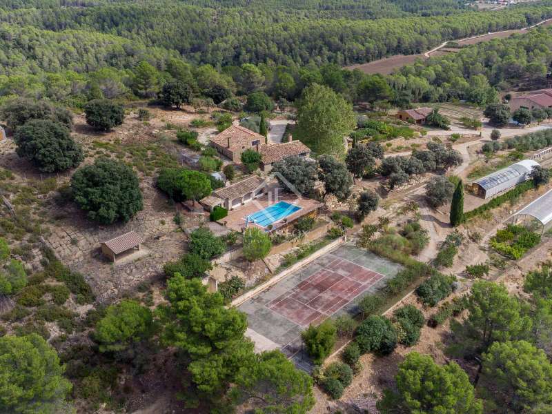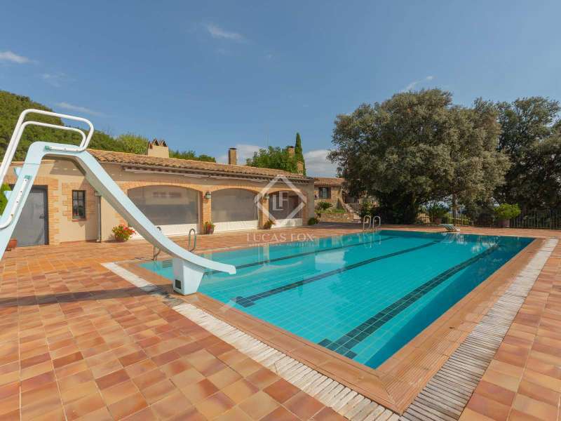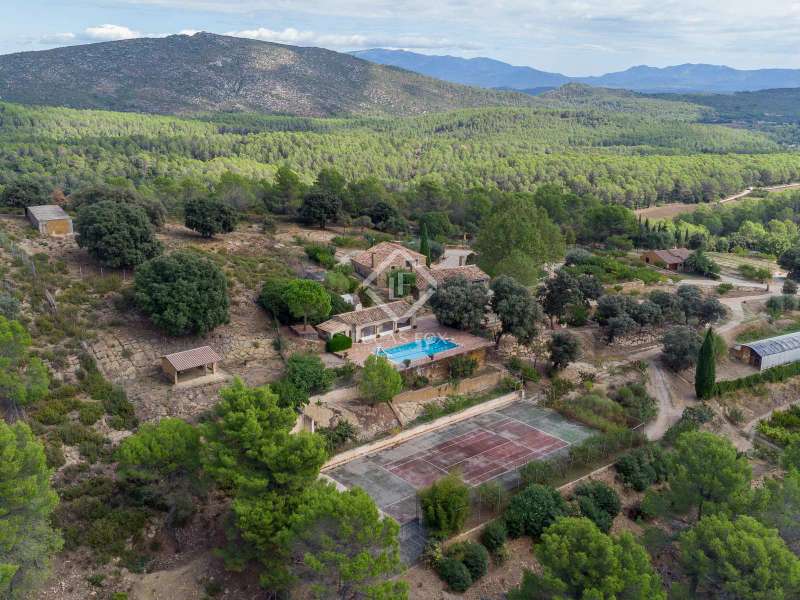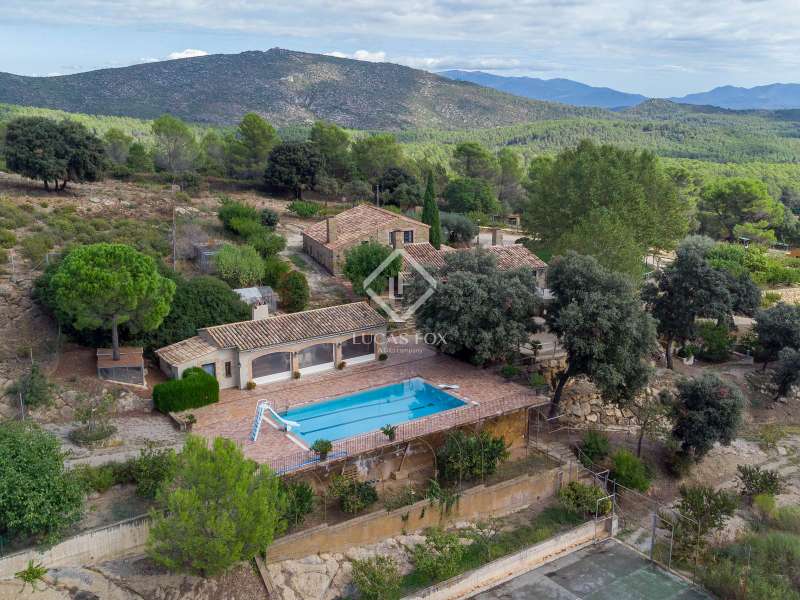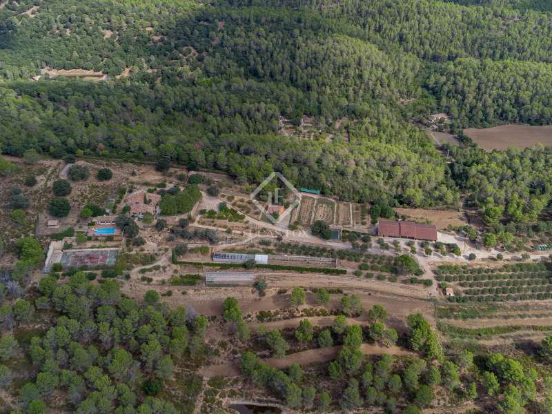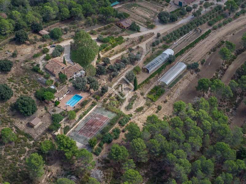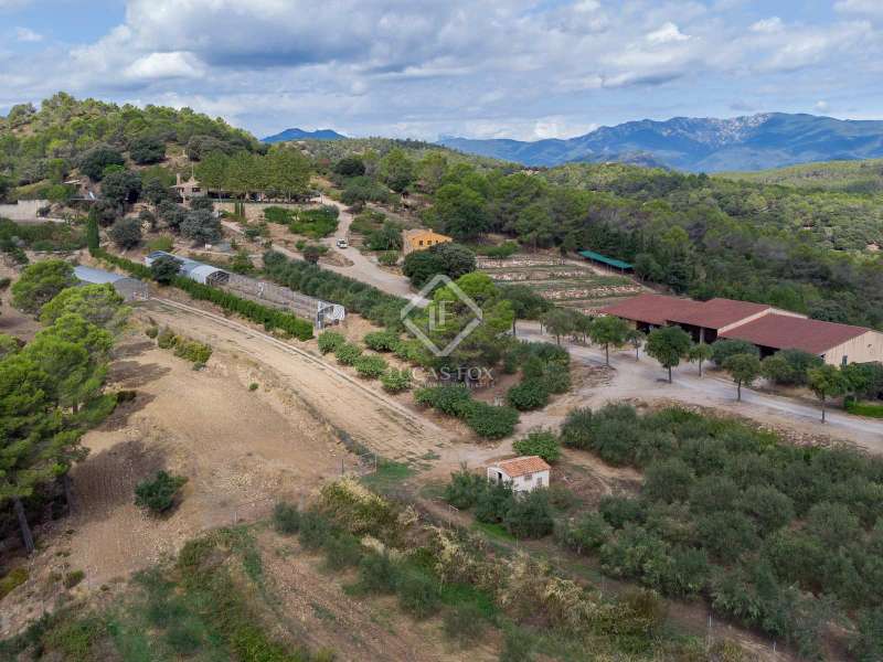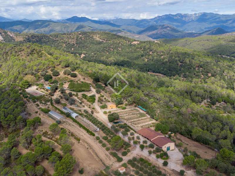 This unique hunting estate for sale in Girona is located in the Alt Empordà region of Catalonia, in northeastern Spain, between the foothills of the Pyrenees and the Mediterranean coast, and enjoys exceptional distant views of the Costa Brava, such as the Cap de Creus Natural Park and the Bay of Roses. The estate has a total surface area of 178.15 hectares (1,781,500 sqm), and is made up of pine forests, holm oak groves and areas of mixed pine and holm oak. Within the estate, there are also a number of cultivated fields covering some 14 hectares (140,000 sqm). The estate is completely fenced, with more than 8 km of wire fences and more than 30 km of dirt roads in good condition. The property also has a Technical Plan for Forestry Management and Improvement, approved by the Administration, and recently revised, which plans the improvements and use of the estate for the next 10 years. The estate is part of a hunting reserve, and has a network of more than 30 km of roads, main, secondary and unblocking roads that perfectly connect the whole estate. The constructed area is in the central nucleus and includes a main house, a guest house, a covered outdoor kitchen-dining room near the swimming pool, and a fully equipped industrial type kitchen for the preparation of meat and sausages. There is also a large warehouse, a fuel depot, a large animal shelter area, several greenhouses with irrigation system and other facilities. In addition, there are a total of seven old listed farmhouses which have preserved their structure and to which there is functional access by means of the estate's roads. There are more than 500 animals on the estate; the main species are wild boar and fallow deer. The vegetation is typically Mediterranean, with oak and pine trees, rosemary, lavender, heather, asparagus, honeysuckle, buckthorn and shrubs. There are also several orchards of fruit trees such as apple, pear, olive, fig, orange and mandarin trees, and an extensive vegetable garden. The property forms part of a large hunting reserve and is sold with all the necessary licences.