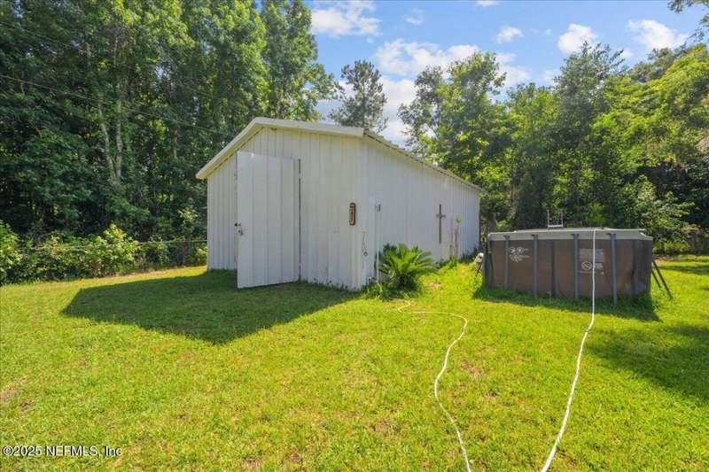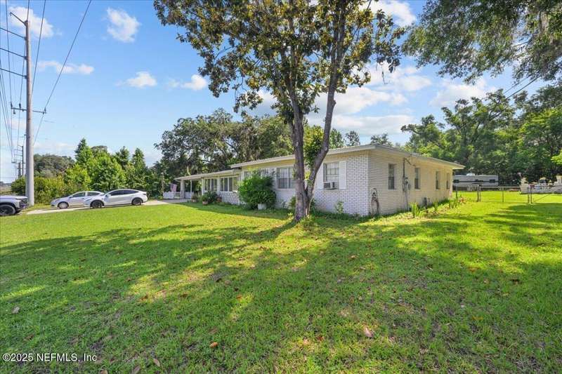 Spacious 2000+ sq ft single-family home on nearly an acre with prime US Hwy 17 frontage-perfect for quick commutes to beaches and major cities. The kitchen is equipped with 2 dining room areas, stainless steel appliances & a walk in pantry. One room includes a flex space-ideal for a home office or nursery. This versatile property features a bright Florida room with oversized windows, 2-car carport, chain link fenced backyard, and a 20x30 metal workshop with electricity. Enjoy outdoor living under the charming gazebo, ideal for relaxing or entertaining. Plus, 3 RV hookups make it ideal for guests or extra income potential. A rare find with space, convenience, and charm!
