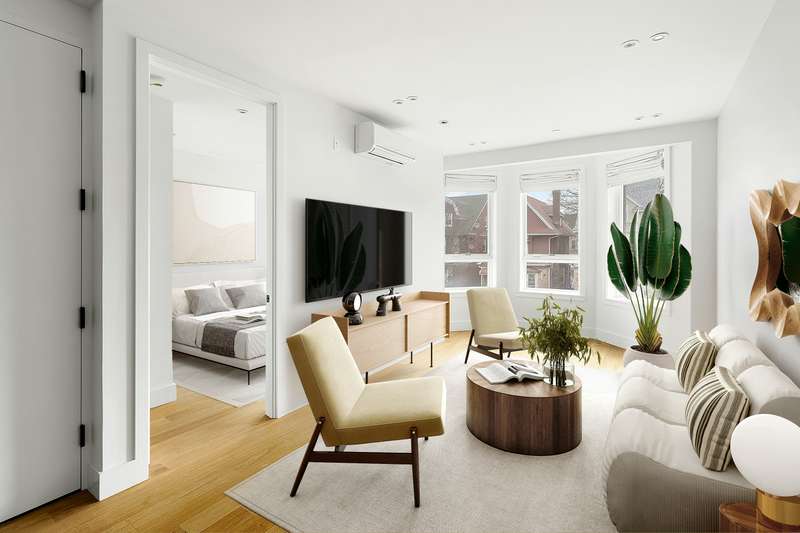 Now, facing out from the middle of your kitchen, behold all of the light! Directly in front is your living room boasting unobstructed vistas toward Canarsie and featuring buckets of streaming morning light. To your right is your 119 ft2 private terrace, which you can outfit with your own sunbathing furniture! And to your left is your pin-drop-quiet bedroom and large closet to contain all of your clothes. Both the bedroom and living room have separate Dakin HVAC units with their own temperature controls, and both rooms showcase leafy, Victorian mansion, rooftop views blocks-and-blocks deep.