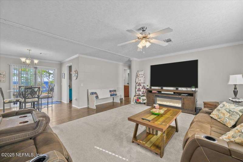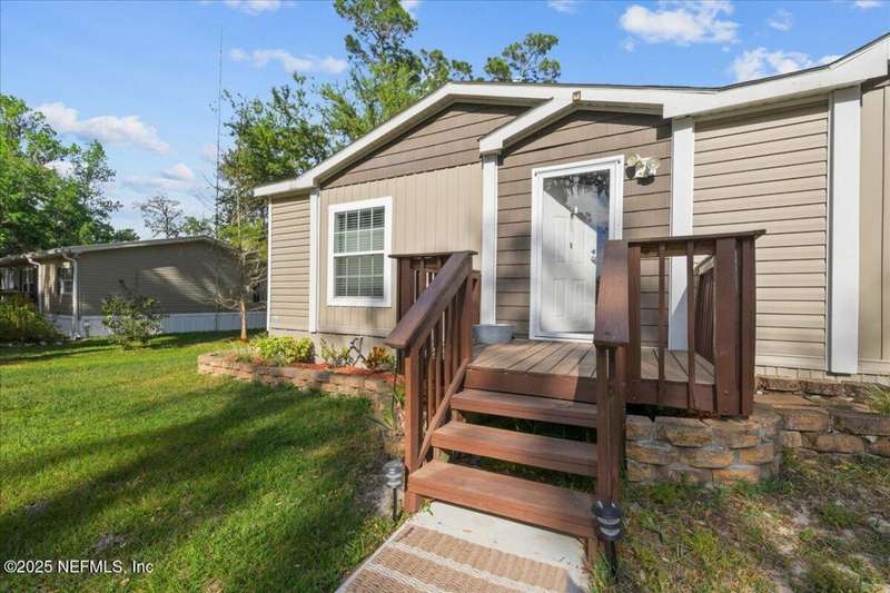 Seller is offering $5,000 closing cost/prepaids credit to buyer at closing! Come take a look at this 3 bedroom 2 Bathroom Lake Front Home on Crescent Lake! This home is a 1490sqft 3 bedroom 2 bathroom split floor plan home from 2018. Inside the house you have an open floor plan that allows for Lake views from the Kitchen, Dining Room, and Living Room. The Master Bedroom is going to have a large walk in closet, coupled with a large Master Bathroom with a HUGE Shower. The Guest Rooms on the right side of the home each have a walk in closet. Out side you have a deck that you walk out to from the Dining room to enjoy your mornings on the Lake, this will also make entertaining and hosting events at this Lake House a breeze. This home also has RV hook ups and the yard has an irrigation system. All decks, dock, sea walls, and Garage were put in during 2019-2020. Dock has had a lower level added in 2024.