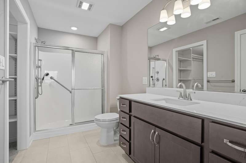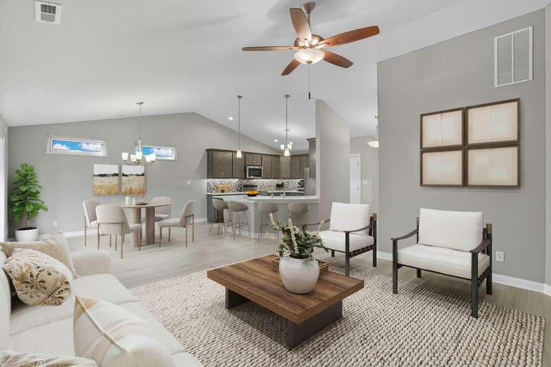 Welcome to Orchard Gate, a highly sought-after 55+ maintenance-free community nestled within The Gates of St. John. This 3 bedroom, 2 bath ranch style home, built in 2023, offers a bright open floor plan, modern upgrades, and complete HANDICAP ACCESSIBILITY ensuring convenience and comfort for years to come. From the moment you step into the sunlit foyer with its' skylight accent, you'll appreciate the open flow, natural light, and custom finishes throughout. Make your way into the gourmet kitchen featuring quartz countertops, a stylish backsplash & sleek under-cabinet lighting. You'll find custom pull out bottom drawers in the kitchen, bathrooms, and laundry room for added function. A reverse osmosis system, customized water softener, and a WHOLE HOME HUMIDIFIER brings comfort and pristine water quality. The dining area and family room feature VAULTED CEILINGS which create a sense of openness that flows beautifully into the sunroom that has custom window treatments perfect for year round entertaining. The primary suite includes a spacious walk in closet which is designed with both luxury and practicality in mind. FRESH PAINT throughout enhances the bright, move-in ready appeal. Step outside to enjoy an oversized covered patio, ideal for relaxing or hosting gatherings. The home sits on a private corner lot with a wrought iron fence, blending durability with classic curb appeal. Better than new, this property combines thoughtful upgrades with timeless design!