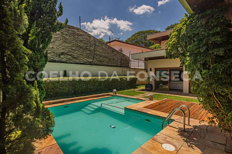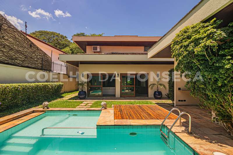 Casa no bairro Jardim Guedala com 422m² área construída, 4 dormitório(s), 3 suíte(s), 6 vaga(s), 8 banheiro(s), piscina, escritório, sauna, depósito, ar condicionado, dep. de empregados.