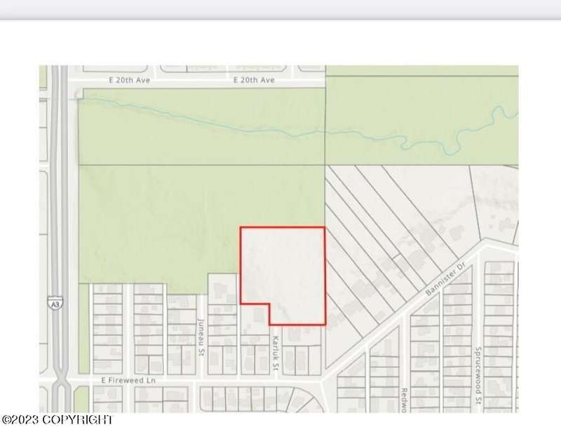 Rogers Park Area - Excellent Midtown Location. 4 Acres of R-1 Zoned Residential Land. MOA R-1 Zoning allows up to 20 Single Family Lots. Potential re-zone for duplex style units (Developer Responsibility). Nicely treed Parcel. Access through the north end of Karluk, which is currently a dead end. The subject property sits to the West of (and touches) four of the Lots located off Bannister Drive.