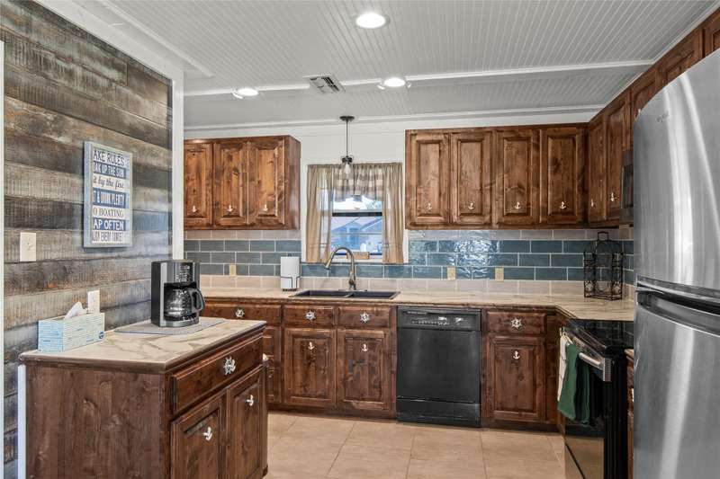 This delightful 4-bedroom, 2.5-bath lake house, located in Key Ranch Estates with easy access to Dallas - partially renovated in 2017, includes an open-concept living and dining area with water views throughout. Shiplap-accented walls in the dining space add charming lakeside character and warmth. The converted garage offers a versatile space that can serve as a media room, game room, or bunk roomcomplete with its own half bath for added convenience and large enough to be easily converted into a full bath. Outside is a spacious backyard with a covered patio, oversized waterfront deck, and grilling area perfect for gatherings with family and friends. An outdoor shower and large storage shed make lake life easy and organized. Next door, enjoy direct access to a well-maintained community park and boat launch, making lake access effortless for boating or fishing. The property includes a single slip boathouse and current sellers enjoy great fishing with their family! Furnishings are includedjust bring your bags and start living the lakefront lifestyle!
