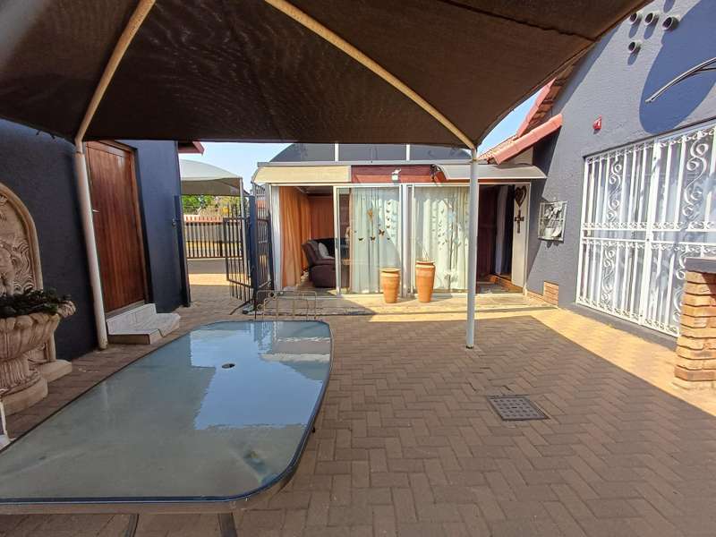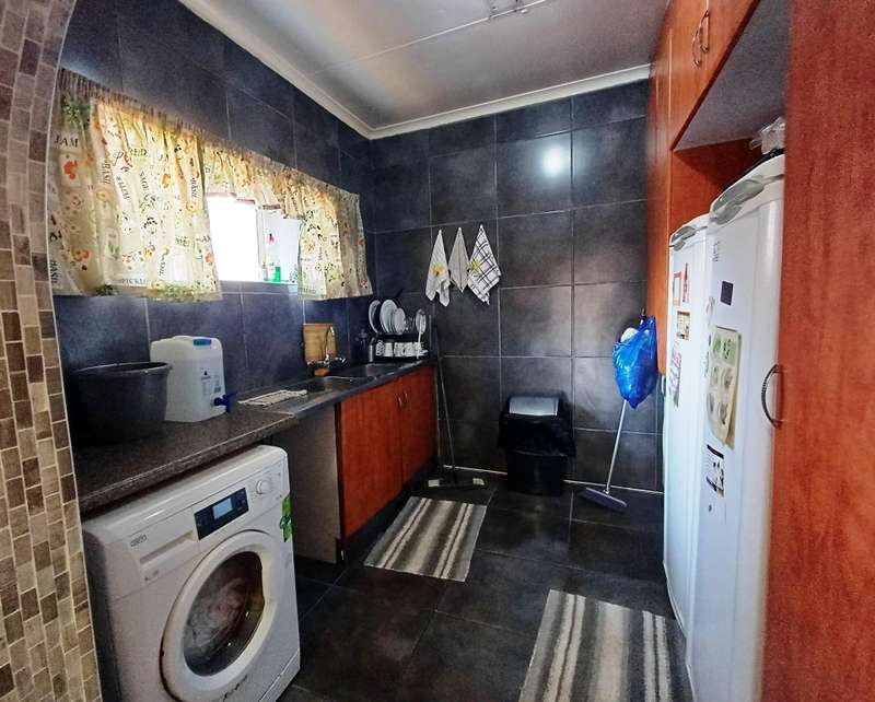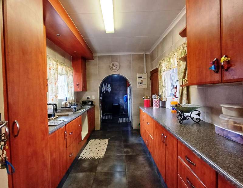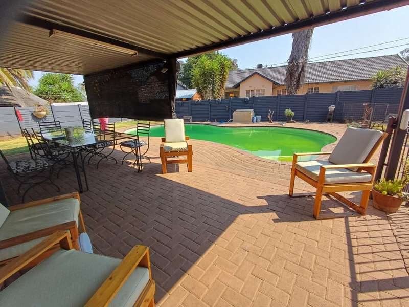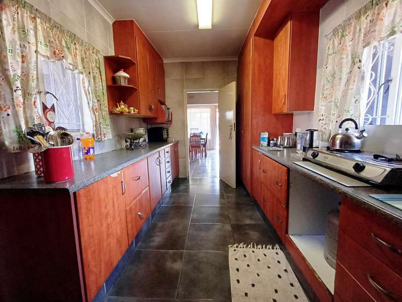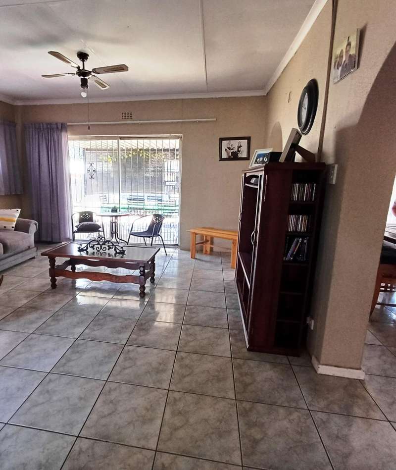 LARGE FAMILY HOME WITH TWO FLATLETS FOR EXTRA INCOME OR FOR THE EXTENDED FAMILY MAIN HOUSE: 3 Spacious bedrooms with built-in cupboards 2 bathrooms, one with shower, basin & loo. Second bathroom with bath, basin & loo Kitchen with melamine tops, cherry wood cupboards, hob, undercounter oven & extractor fan. Separate scullery, space for appliances Spacious lounge and dining room Well maintained garden with a sparkling swimming pool Carport to house 6 vehicles FIRST FLATLET Lounge, dining room, kitchenette, bedroom, bathroom with shower, basin & loo SECOND FLATLET Lounge, kitchenette, bedroom, bathroom with shower & bath Flatlets have prepaid electricity ADDITIONAL 6 Solar panels 3 Gas geysers Property fully alarmed