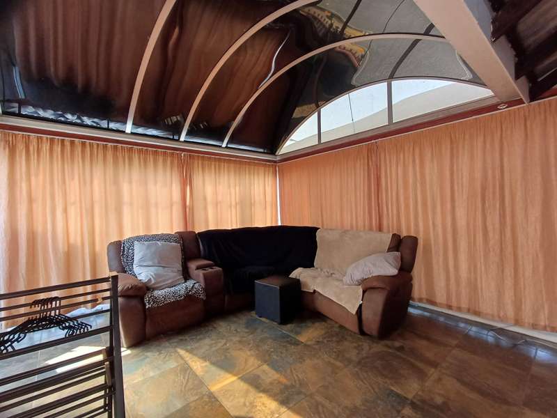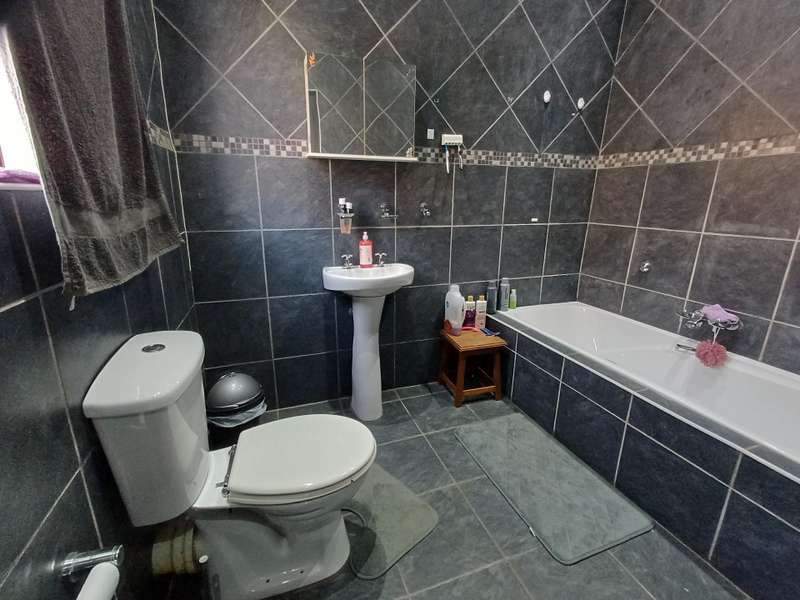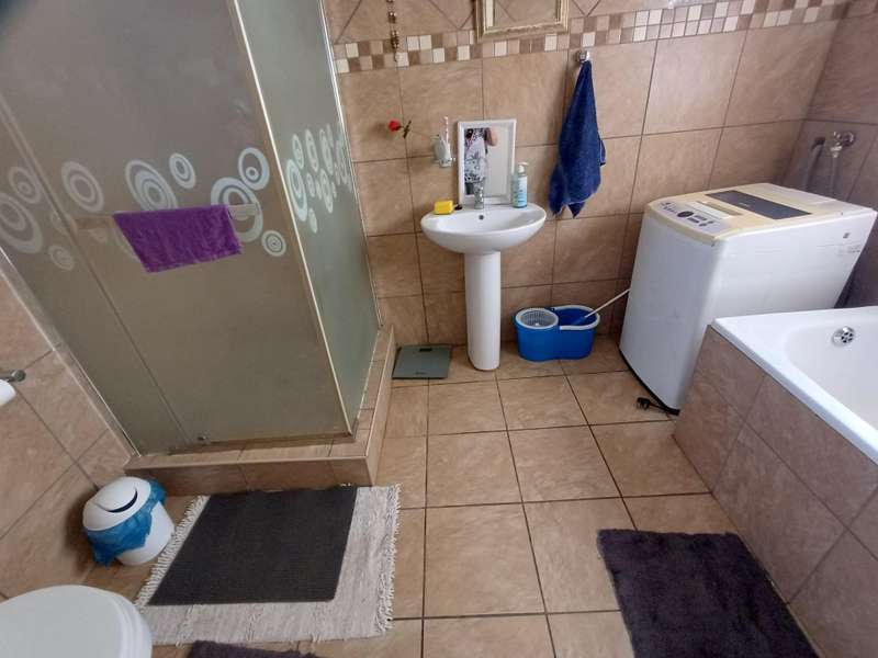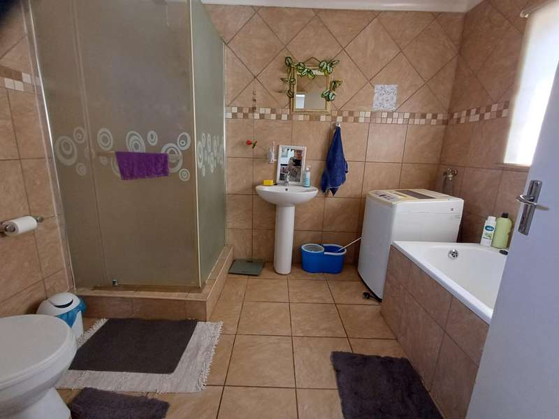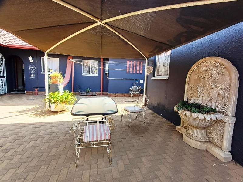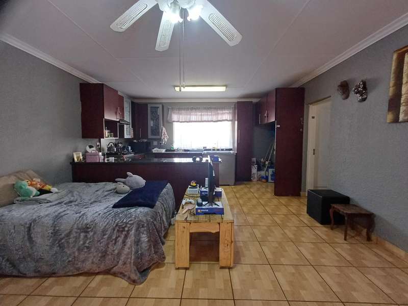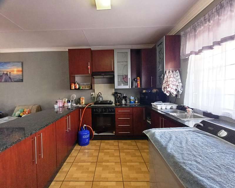 LARGE FAMILY HOME WITH TWO FLATLETS FOR EXTRA INCOME OR FOR THE EXTENDED FAMILY MAIN HOUSE: 3 Spacious bedrooms with built-in cupboards 2 bathrooms, one with shower, basin & loo. Second bathroom with bath, basin & loo Kitchen with melamine tops, cherry wood cupboards, hob, undercounter oven & extractor fan. Separate scullery, space for appliances Spacious lounge and dining room Well maintained garden with a sparkling swimming pool Carport to house 6 vehicles FIRST FLATLET Lounge, dining room, kitchenette, bedroom, bathroom with shower, basin & loo SECOND FLATLET Lounge, kitchenette, bedroom, bathroom with shower & bath Flatlets have prepaid electricity ADDITIONAL 6 Solar panels 3 Gas geysers Property fully alarmed