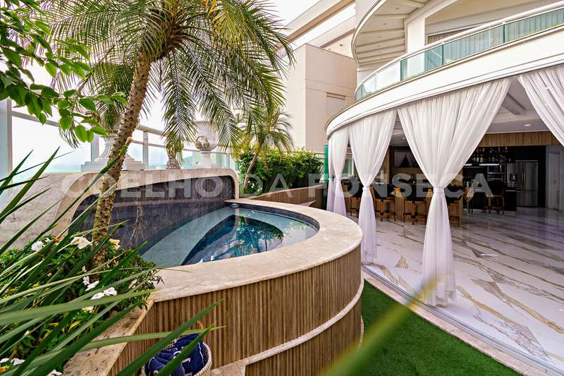 Cobertura no condomínio GRAMERCY MADISON, com 495m² área privativa/útil, 4 dormitório(s), 4 suíte(s), 6 vaga(s), 7 banheiro(s), piscina, churrasqueira, escritório, terraço, mobiliado (a), duplex, ar condicionado, dep. de empregados, reformado (a), varanda gourmet.