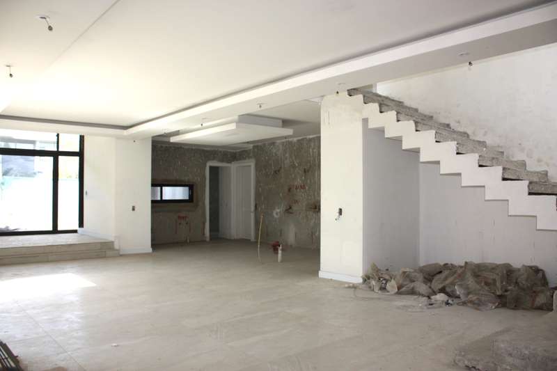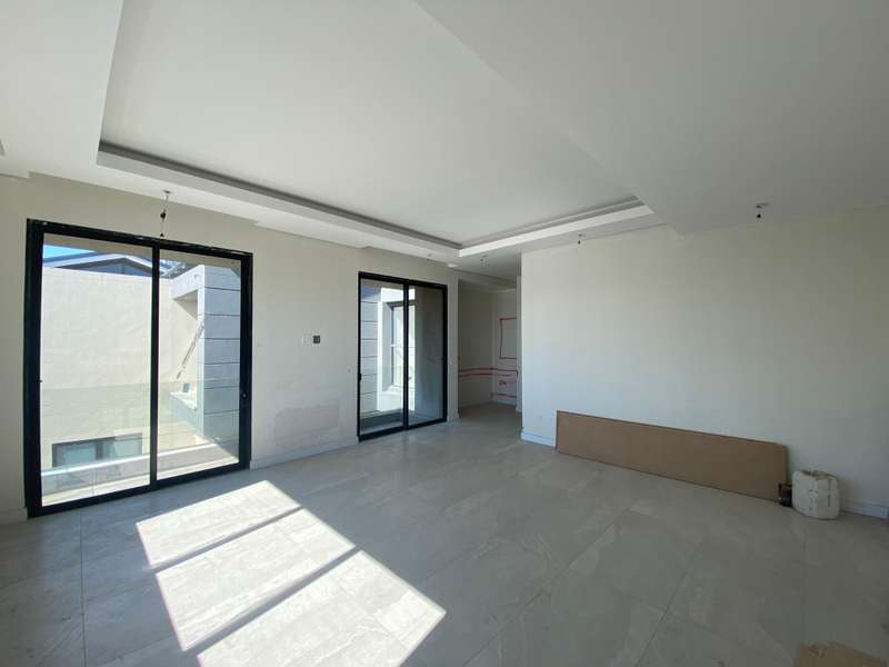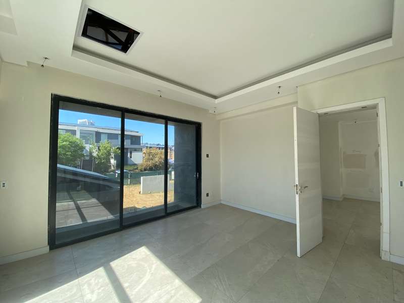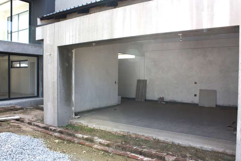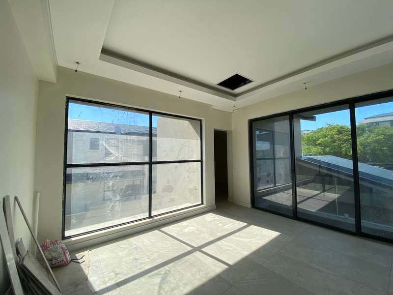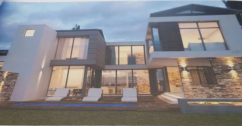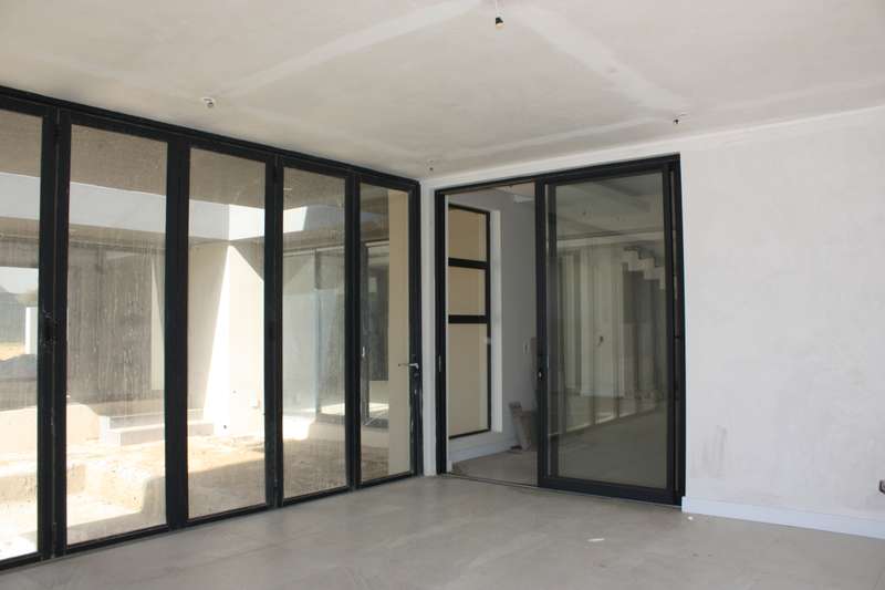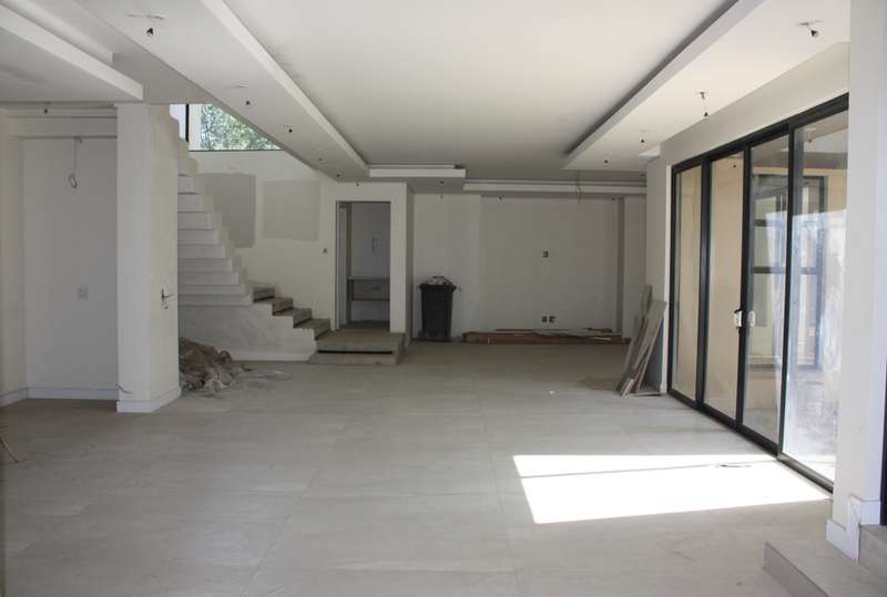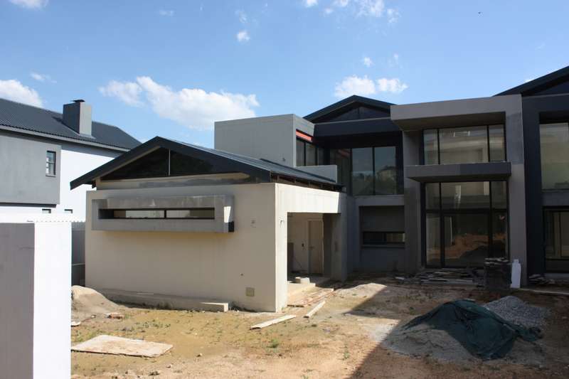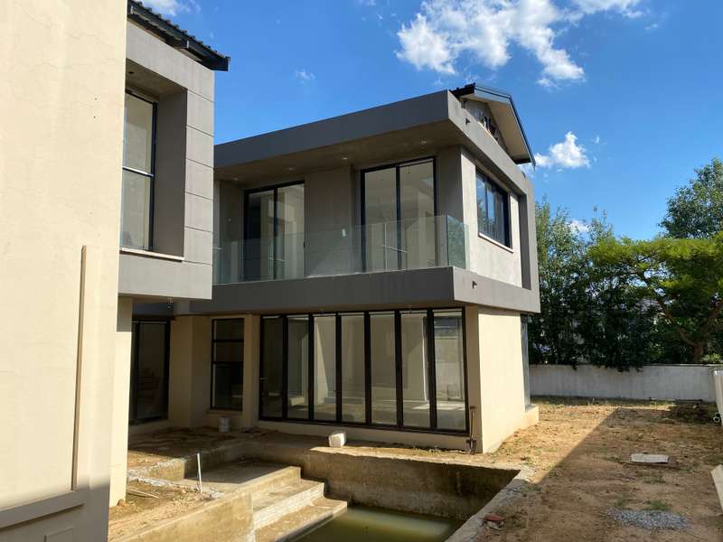 Thoughtfully designed with generous proportions and superb flow, this exquisite home awaits its new owner to finalize this portrait of beauty, style and contemporary opulence. Apply your creative flair, let you imagination run free and craft your own personal haven. The double volume, open plan reception areas and kitchen lends itself to both formal and informal entertainment, effortlessly extending to the covered patio and pool. The pantry and scullery/laundry areas are neatly tucked away adjacent to the kitchen. There is a study downstairs and a convenient guest bedroom with en-suite bathroom plus separate lounge area. Versatile spaces for overnight visitors, another work-from-home area or a TV/hobby room. Delight in beautiful views from the upstairs accommodation area, featuring four generously proportioned bedrooms, all with en-suite bathrooms and a centre pajama lounge. The main bedroom has a spacious dressing room and balcony. The second and third bedrooms also feature dressing areas and balconies plus a lounge/playroom attached to the third bedroom. The fourth bedroom has ample BICs. Two double garages fit two cars each, and there is extra space for a trailer, bikes or storage. Both garages have direct access into the house. Embrace the opportunity to make this inviting residence your own, where comfort and style blend seamlessly. Additional features: Staff accommodation Electrical installation Aircon-ready Solar Borehole Aluminium window- and door frames Double glaze windows and doors Sauna room
