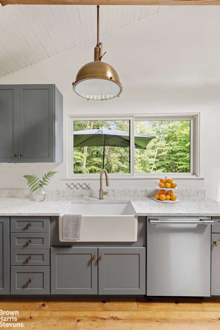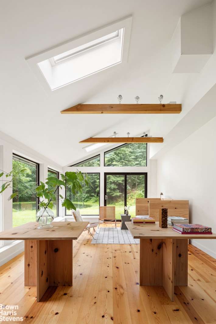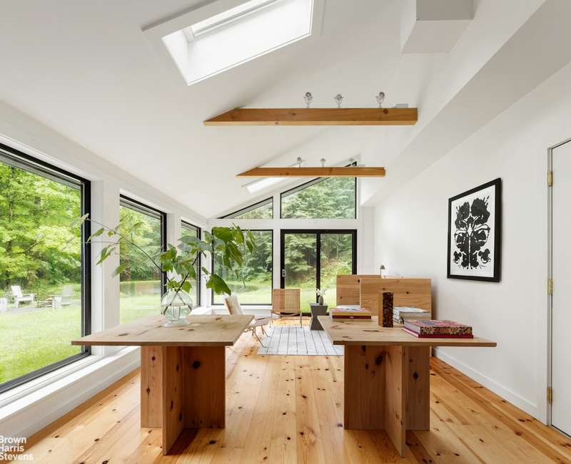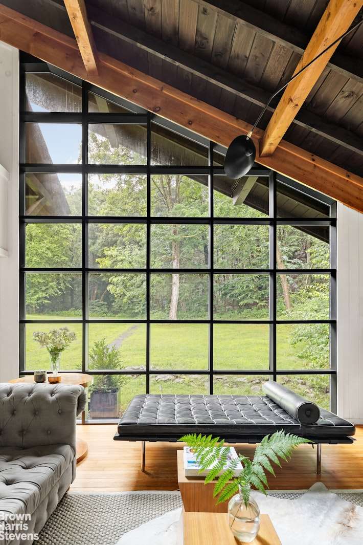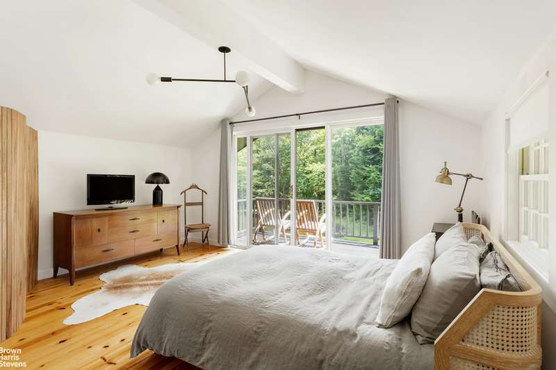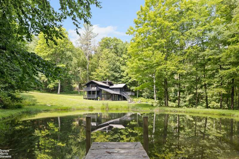 Architecture meets nature in Hillsdale. A fully secluded getaway at the end of a private dead-end road on 7 pristine acres. This sunny 3-bedroom, 2-1/2 bath house is inspired by Scandinavian design and features 3 outdoor decks, with views of a spring-fed stream, a crystal clear pond, and deep green woodlands. Central AC for summer days and a wood stove for snowy nights. An ideal layout for working from home and for guests, this well-maintained house includes a ground-level walkout room which would be ideal for a studio or for entertaining. Reimagined by a fashion editor and creative director, 10 minutes from Great Barrington and 7 minutes to the Catamount Ski Resort, this property is situated between the Berkshires and the City of Hudson, with endless shopping, food and cultural destinations.