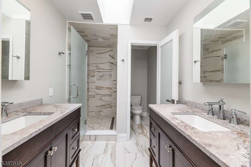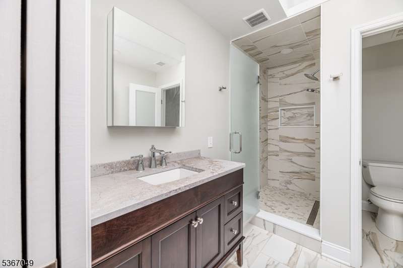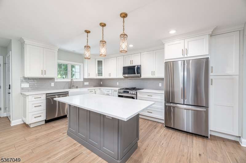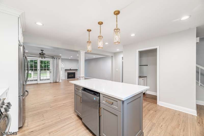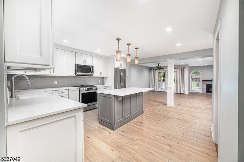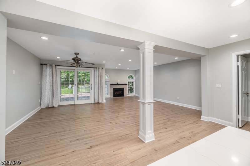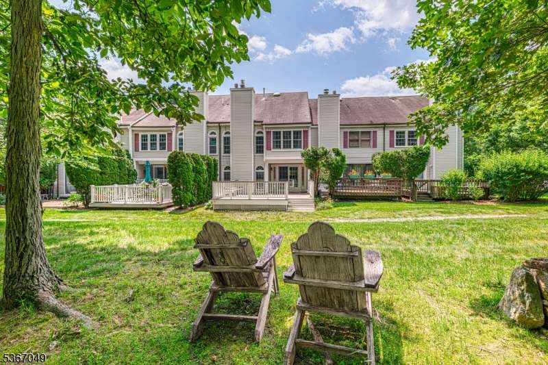 Beautifully updated and redone! Main floor totally opened up. Both levels have been refloored. Fab kitchen with quartz counters, all new appliances from furnace to washing machine to stove, new light fixtures, large island for food prep and cosy dinners! Copious amounts of cabinet space. Hearth and Home refaced the new gas fp and as you look through the back a mostly glass wall entices to the trex deck and out to the trees bringing natural light .The foyer has a lg double coat closet and garage entry. All the bathrooms including 1st fl powder room have been updated with fair sized new mirrored cabinets incl his and hers in the main bath. The sunny primary bedroom has a wall of closets and a full deep closet opp. The two secondary Bedrooms are across the back and nicely sized. The real surprise is that the pull down stairs were added so that full second heat and a/c units could be added! The basement is unfinished, very clean and has enough light for a party!The large clubhouse has an indoor pool for winter as well as an exercise room and his and hers saunas. The Mendham Homeowners Townhouse Association meets most months and The Manager has an on site office as well. Residents have monthly BYOB enjoyable cocktail parties as well as book club meetings.. Aberdeen also abuts the walkway that hooks up with Patriot's Path (this also provides a nice stroll to the Middle School).