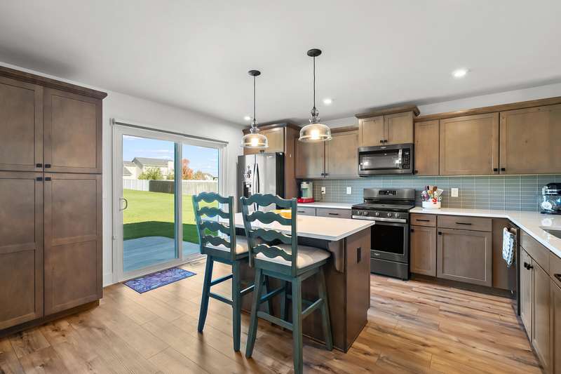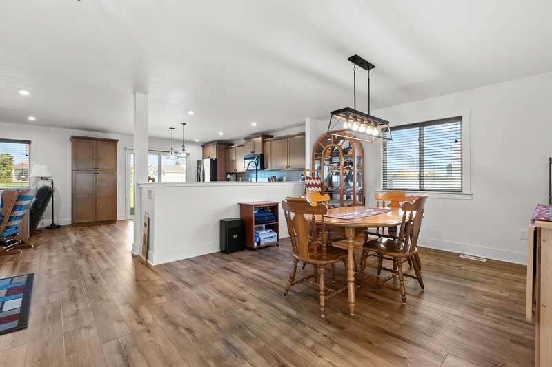 Step inside this beautifully updated home featuring an inviting open-concept floor plan that blends style and functionality. The kitchen is a showstopper with modern warm-tone cabinetry, light countertops, and a stunning tile backsplash that adds a touch of personality and charm. The finished basement offers even more living space, complete with egress windows and a full bathroom-perfect for guests, a home office, or a cozy retreat. Enjoy the outdoors on the brand-new concrete patio, overlooking a well-maintained yard with a full underground sprinkling system for easy care. Thoughtfully designed and move-in ready, this home combines comfort, quality, and modern appeal throughout.