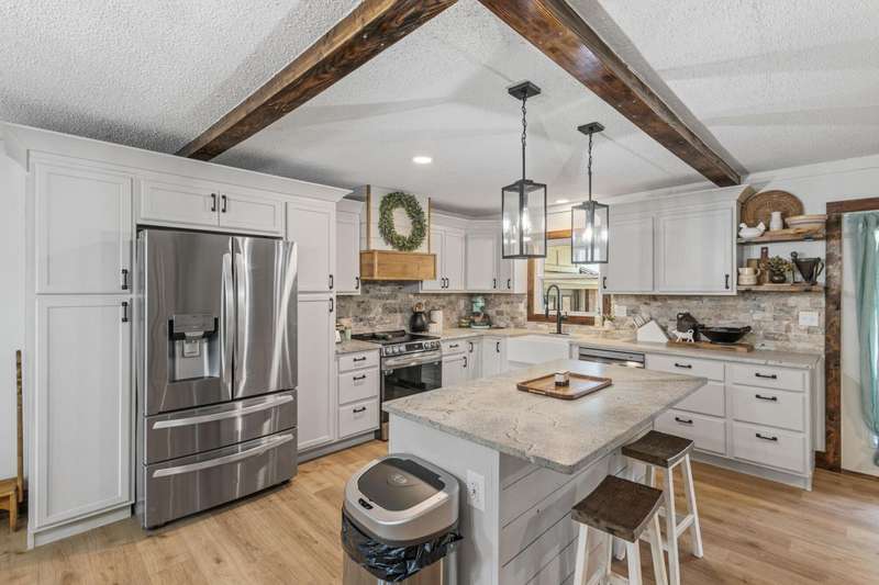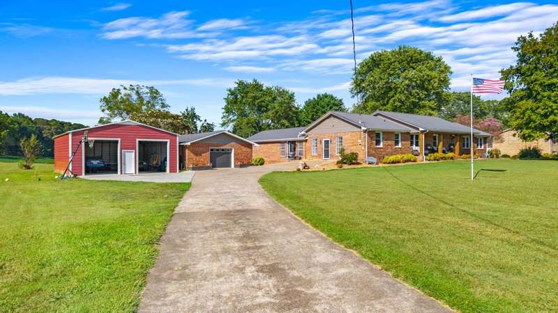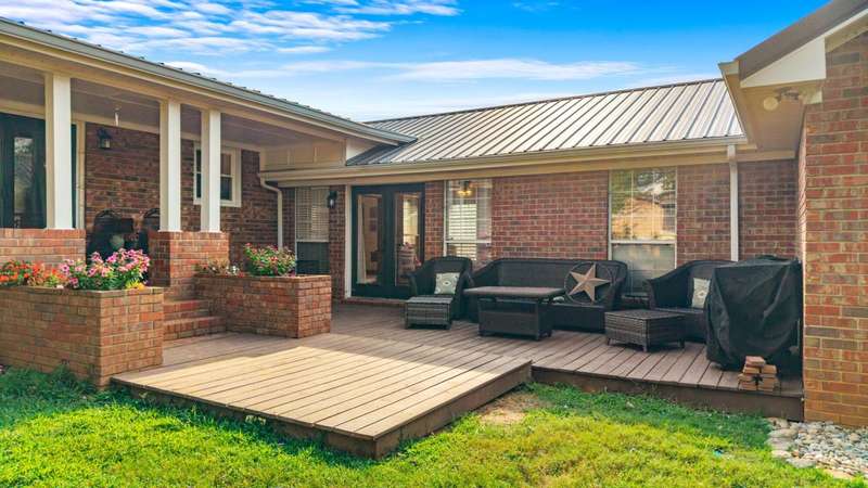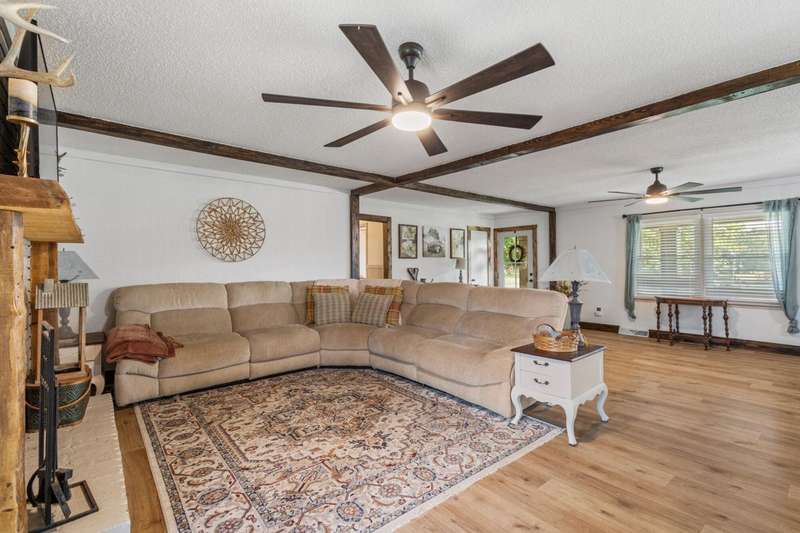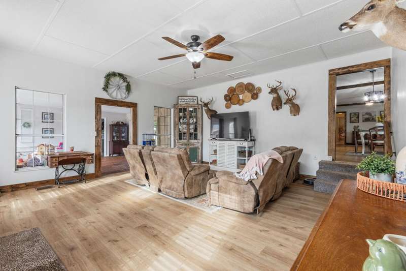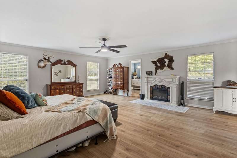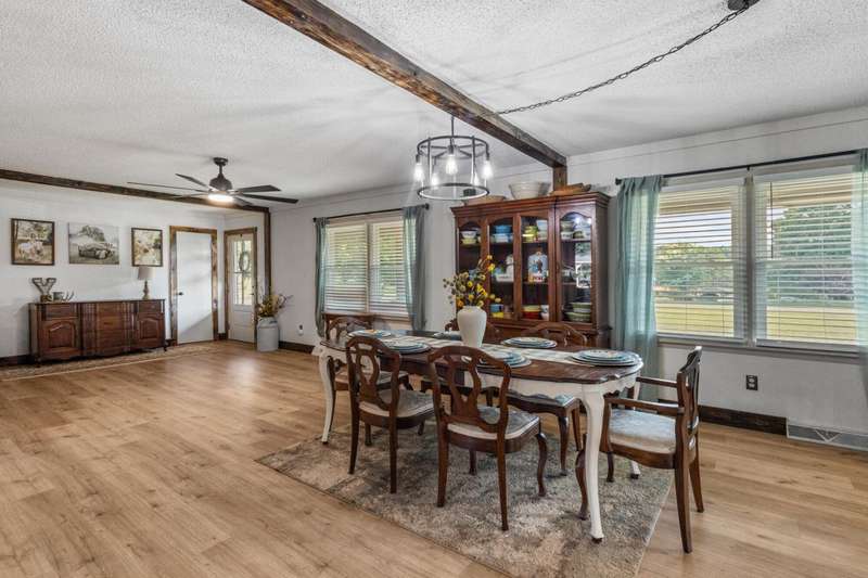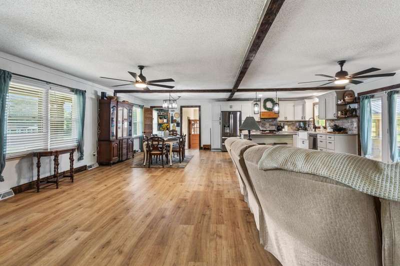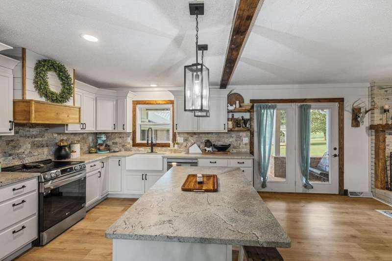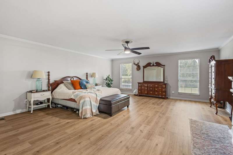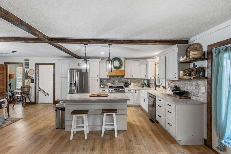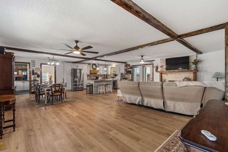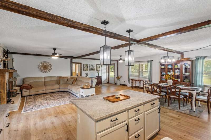 Welcome to this stunning property featuring 4 bedrooms and 3 full bathrooms, including two primary suites with private en suite baths???ideal for multi-generational living or guest accommodations.The heart of the home is an open-concept floor plan, where the kitchen, dining, and living areas seamlessly connect to create the perfect space for gathering and entertaining. The beautiful kitchen offers a large island, leathered granite countertops, and a walk-in pantry for ample storage.Step outside to enjoy a spacious patio overlooking almost 3 acres of land, providing plenty of room for relaxation, play, or future outdoor projects. Recent updates add peace of mind, including a new roof, 2 new HVAC units, and new windows.