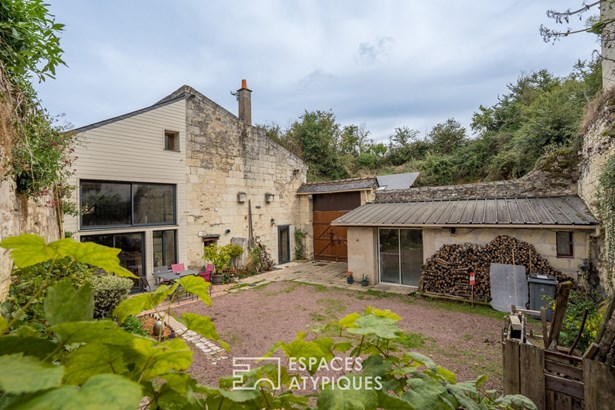 Outside, the landscaped garden reveals a breathtaking view of the valley. A separate 18 sqm studio completes the property, with a laundry room, shower, and a 30-meter deep well. A staircase leads to a panoramic terrace, ideal for enjoying sunsets over the Loire. Located in the heart of an emblematic village, renowned for its slate roofs and white tuffeau houses, the property combines history, authenticity, and modernity. Its peaceful environment, close to Montsoreau and the banks of the Loire, makes it a sought-after address for a primary or secondary residence project. An atypical property that will appeal to lovers of heritage and architecture, to be discovered for a real favorite.
