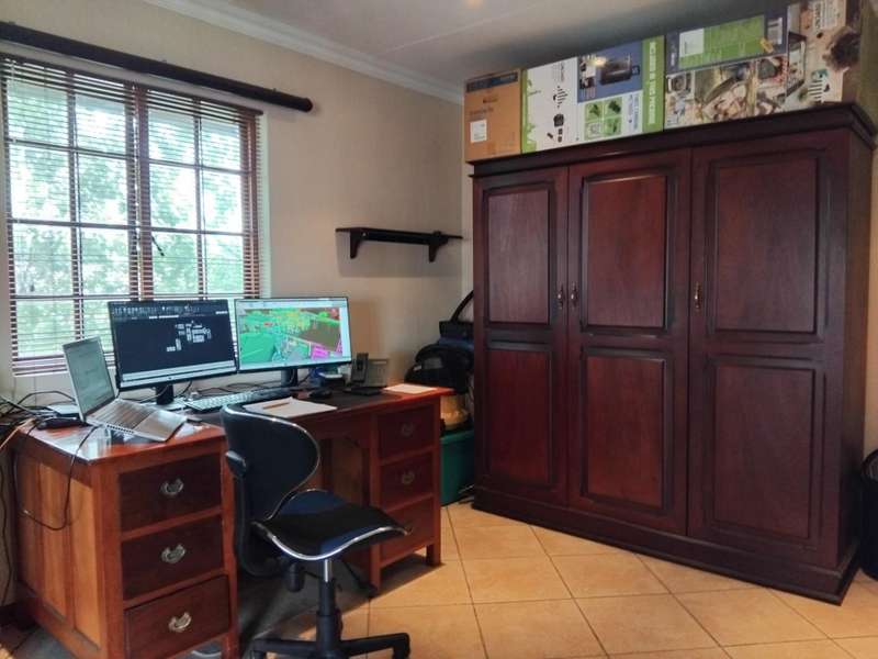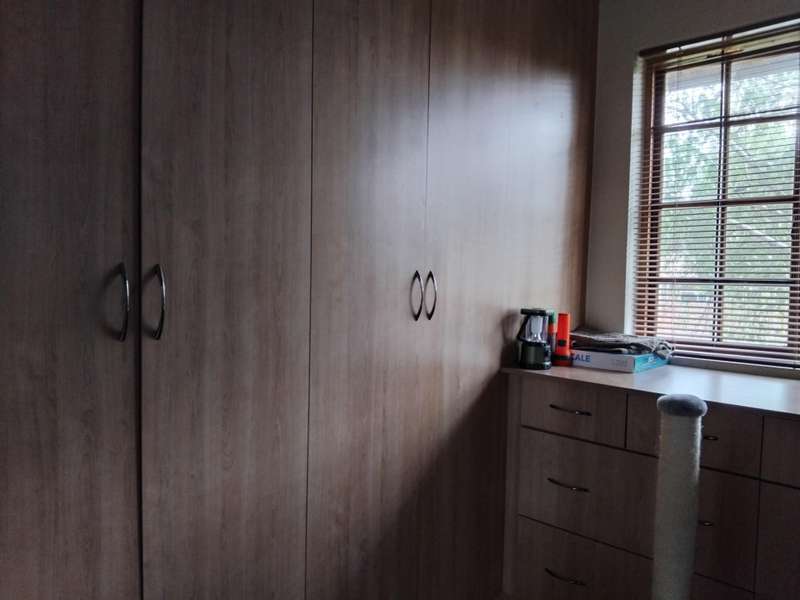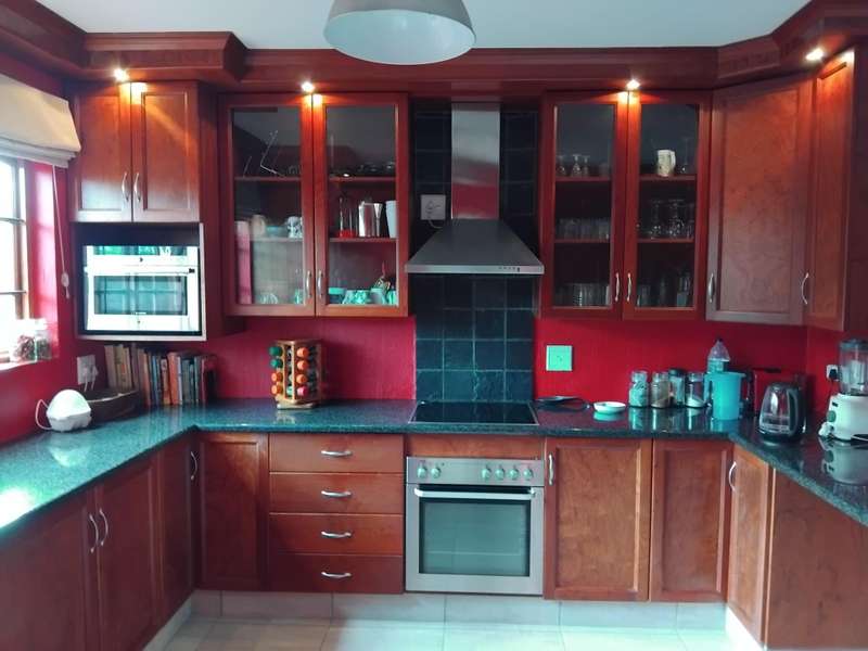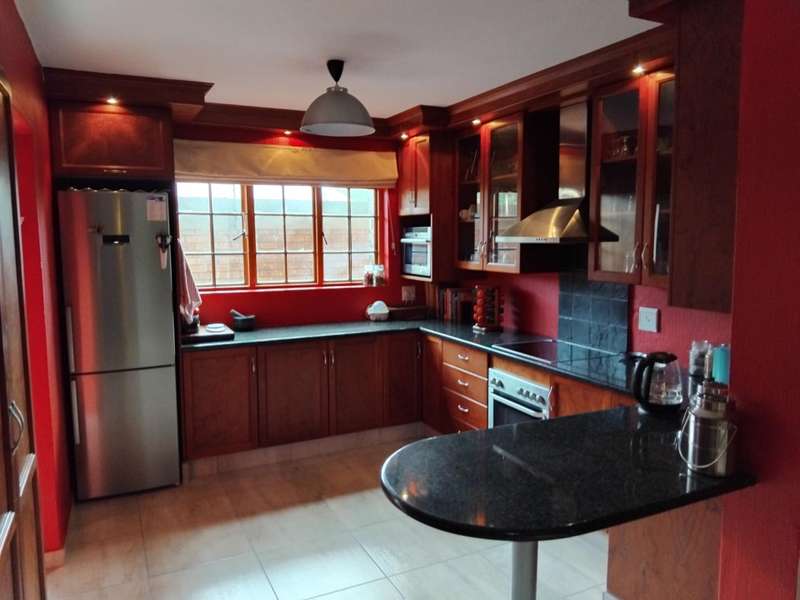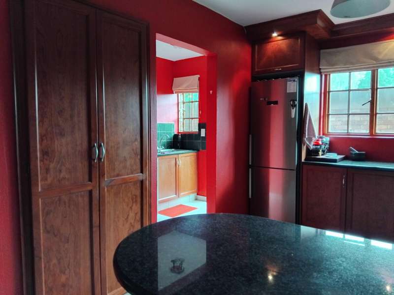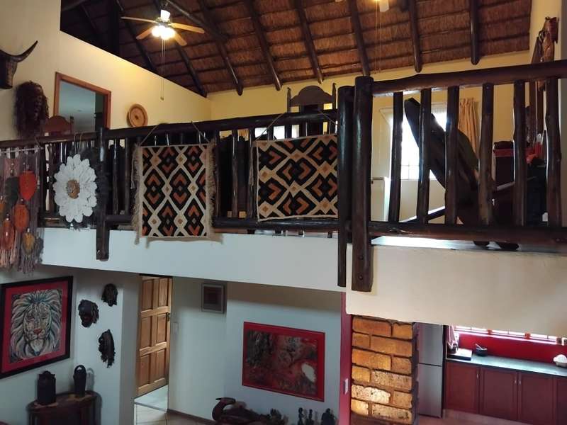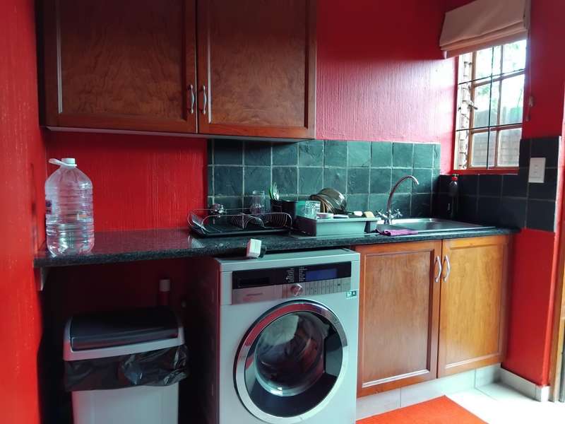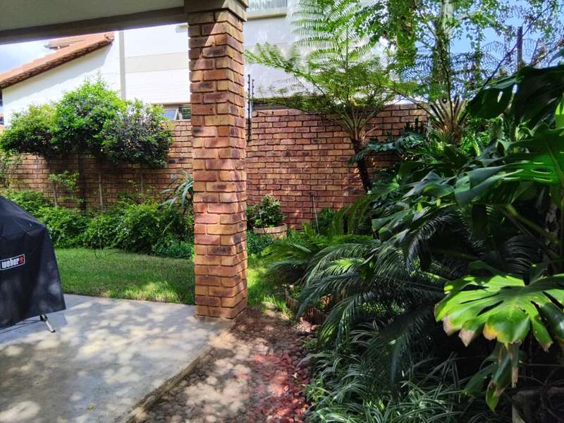 SPACIOUS AND IMMACULATE FACEBRICK 4 BEDROOM CLUSTER ?Çô FULL TITLE This home welcomes you with it?ÇÖs natural ambiance and warmth of an African Lodge feel. Tulusisa Terrace is a full title security complex, well positioned in Rynfield, with easy access to major routes, shopping centres, schools and local amenities. This exquisite home has so much to offer; 4 Bedrooms ?Çô two downstairs and two upstairs. Large main bedroom with dressing room and en-suite bathroom and balcony. The second upstairs bedroom has it?ÇÖs own large private patio. 2 Full bathrooms, one downstairs and one upstairs. 2 Large living rooms ?Çô one downstairs and one upstairs. The upper living room could easily be divided into two more bedrooms ?Çô this could become a six bedroom home! Lovely double volume open plan living room, ease of flow to the open plan kitchen. The kitchen is enriched with solid wooden cabinetry, has granite tops, separate laundry and scullery area, plus pantry cupboard. The thatched roof has newly been Marley tiled over ?Çô so no maintenance is required, however, the thatch is still visible internally and hence the natural ambiances. Ample storage areas that include a linen cupboard and storage cupboard under the stairs. Double automated garage with direct access into the home. The home is surrounded by a picturesque, well established and maintained garden, complete with irrigation. Pre-paid electricity. Live in safety with fantastic 24/7 security guarded system, with intercom access. To view this accommodating family home by appointment, please call Carron today. Land size : 408sqm Floor Area : 245sqm Rates + Taxes : R1 757 HOA Levy : R800 Water : Approximately R700 Security Levy : R800 ENJOY THE GARDEN FROM THE THATCHED ENTERTAINERS LAPA THAT HAS ROLL DOWN SIDES TO PROTECT FROM THE WEATHER.