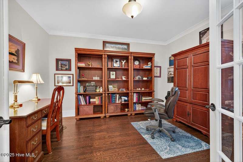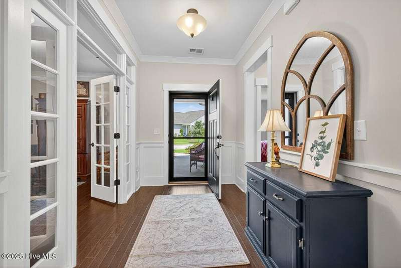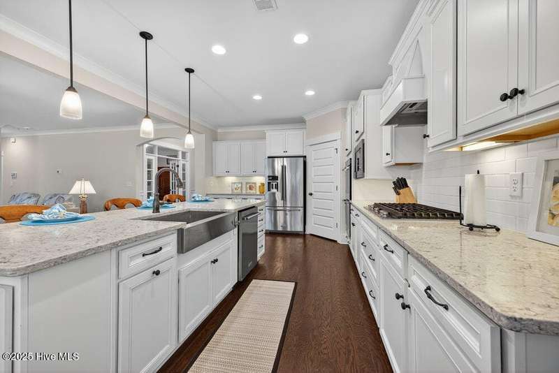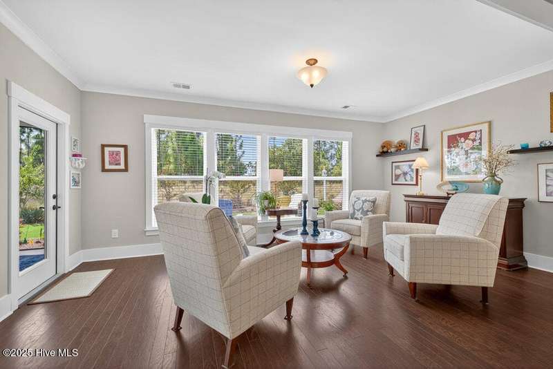 Located in the Del Webb section, of the master-planned community of Riverlights, featuring resort style amenities, this Dunwoody floorplan showcases open concept living with optional/upgraded, Crown molding, baseboards & doors. The house features 3 bedrooms & 3 full baths, a Flex-Room/Office/Library, with French doors w/transom all on the 1st floor living area. A Gourmet kitchen with upgraded cabinets, soft-close drawers & doors, pull-out shelving, a stainless-steel farmhouse sink, stainless steel Kitchen-Aid appliances with a 5-burner gas top stove, a double wall oven unit, a built-in microwave & a large pantry, round out this dream kitchen.Through-out the house you will find designer lighting, several ceiling fans, blinds, as well as engineered hard wood flooring in the main living areas, with tile in the baths completing the main living areas. The Master ensuite bath features a zero-entry walk-in rain-head shower. The second ensuite bath features the optional Shower. A combination drop-zone, laundry room has storage cabinets with sink & leads to the extended garage with an epoxied floor & walk-up attic storage. The house is situated on a premium lot w/enhanced landscaping & an integrated sprinkler system, where the lawn is maintained by the HOA. The Del Webb subdivision of the RiverLights community features amenities galore; numerous clubs & activities, an indoor saltwater pool, outdoor pool, hot tub, firepit with seating, pickle ball/tennis and bocce ball courts. Enjoy the lovely 3+ mile walking / biking path around the lake or take a short drive or bike ride to Marina Village on the Cape Fear River, where you'll find several shops and restaurants as well as breathtaking sunsets. Come see what you have been missing!!