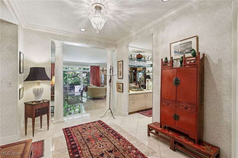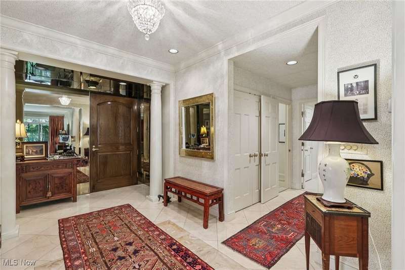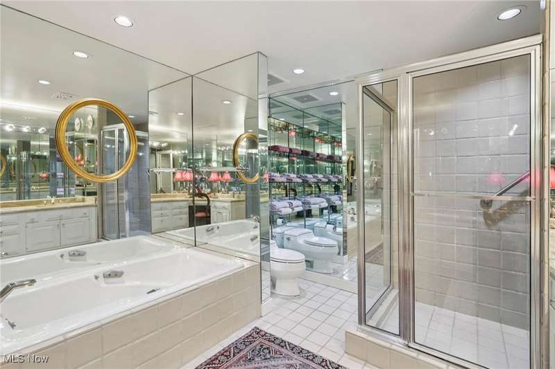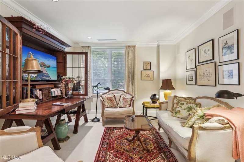 Welcome to this sought after Three Village condominium unit with a stunning balcony featuring a beautiful wooded view. The unit boasts a spacious layout with a living room, dining room, den/library and two bedroom suites, each with its own bathroom. It also includes a powder room and hardwood floors. The gated community offers amenities like 24-hour security, on-site management, indoor garage, guest suites, party room, exercise room, indoor pool, and tennis courts, with a private entrance to the Metropark.