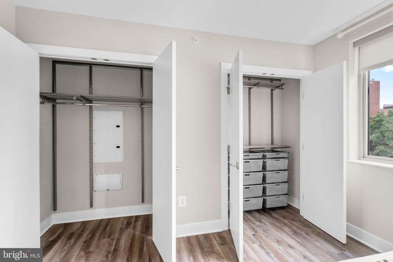 Stunning Corner Unit in Coveted Logan13* Welcome to this beautifully designed condo in one of DCs most sought-after boutique buildings. From the stylish lobby to the convenient elevator access, every detail of Logan13 exudes modern urban living. This sunlit corner unit is wrapped in walls of windows and features wide-plank LVP flooring throughout. The open Living Room and Dining Room layout is perfect for entertaining, flowing seamlessly into the sleek Euro-style center island kitchenideal for barstools and casual gatherings. The kitchen boasts a striking quartzite countertop, Bosch gas cooktop and wall oven, Bosch refrigerator, stainless steel undermount sink, and eye-catching pendant lighting. Step outside onto your private balcony and take in the beautiful views, or head to the buildings rooftop deck for even more outdoor space to relax (and grill) and enjoy the city skyline. The spacious bedroom offers double closets with custom organizers. The luxurious full bath features a floating vanity, upgraded floor tile, and a designer tub/shower surround. Additional highlights include an in-unit Bosch washer and dryer, one assigned garage parking space (no more parking headaches!), and an unbeatable location just steps to Whole Foods, Trader Joes, 14th Streets vibrant dining scene, shops, and Metro. Urban living at its finest in Logan Circle!