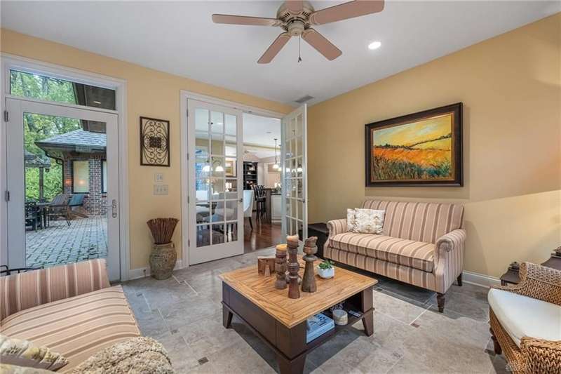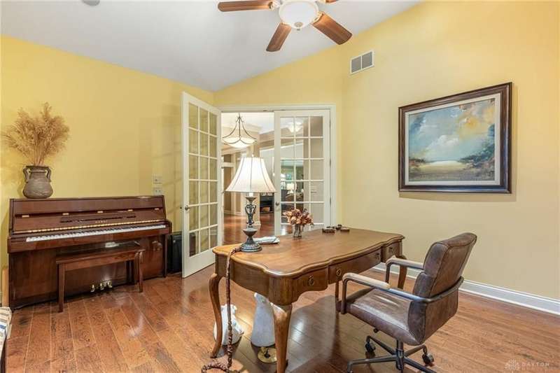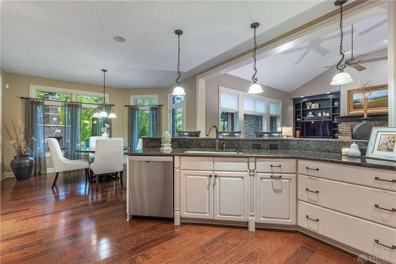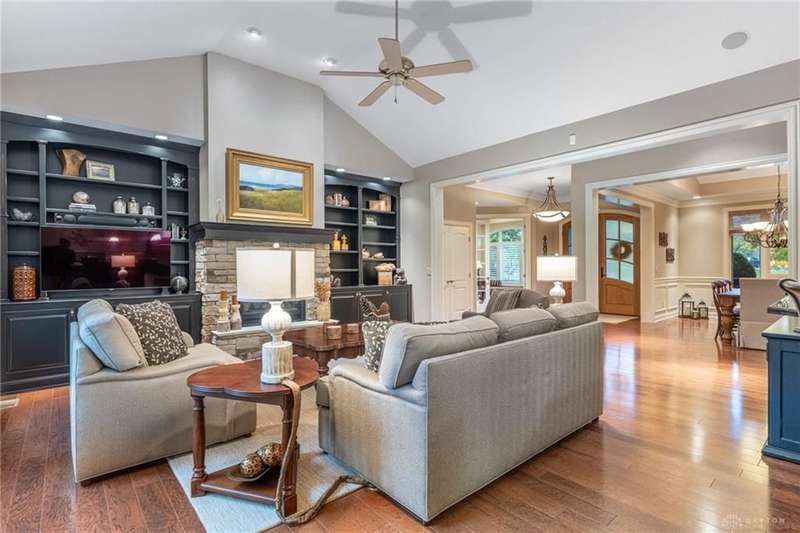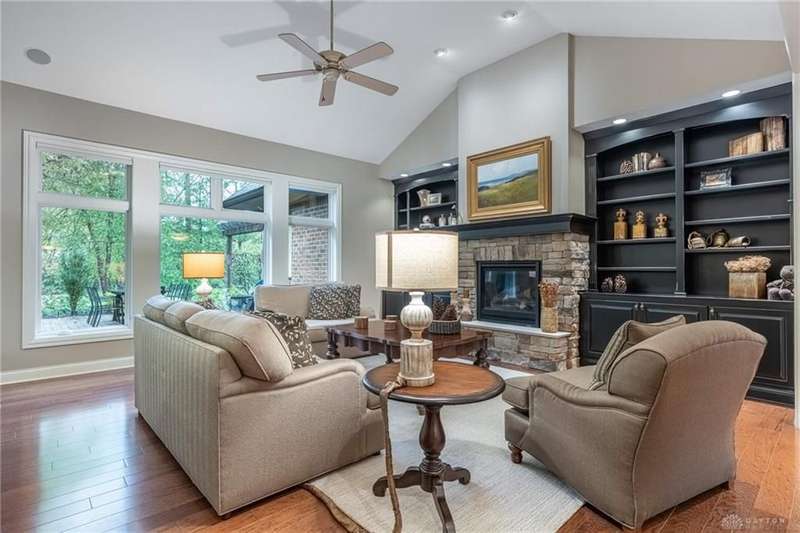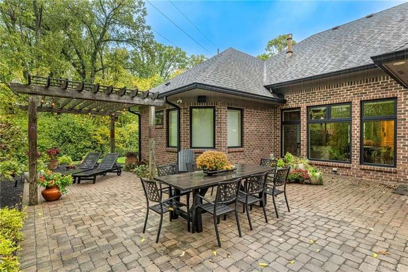 Stunning Custom Ranch in Yankee Trace - A True 10/10! Tucked away on a private wooded cul-de-sac in the coveted Yankee Trace community, this M.J. Coates custom-built ranch is the epitome of luxury and serenity. From the moment you step onto the expansive paver front porch with its elegant double glass doors, you'll feel the warmth and sophistication that define this pristine home. The open and airy living spaces include a large dining room with cathedral ceilings that flows seamlessly into the great room, featuring built-in bookcases and a cozy gas fireplace, with oversized windows flooding the area with natural light and framing views of the lush outdoors. French doors open to an elegant home office/den with custom built-in cabinetry and rich woodwork, perfect for remote work or quiet retreats. The gourmet kitchen is a chef's dream, boasting abundant cabinetry, granite countertops, a walk-in pantry, high-end Bosch appliances, a breakfast room, and breakfast bar ideal for casual meals and entertaining. Adjacent to the kitchen, the sunlit sunroom provides a serene retreat for morning coffee, reading, or enjoying peaceful wooded views. The luxurious primary suite features trey ceilings, two walk-in closets, and a stunningly remodeled ensuite bath with high-end finishes, while two additional spacious bedrooms are connected by a convenient Jack & Jill bath. Step outside to your outdoor oasis and private sanctuary, where a huge paver patio awaits with an outdoor fireplace and pergola pre-plumbed for a hot tub, surrounded by professional landscaping and outdoor lighting, all overlooking hole #2 on the Vintage Golf Course while still maintaining privacy. Nestled in the prime location of Yankee Trace, one of the most desirable communities in the area, this meticulously crafted custom-built ranch showcases thoughtful details throughout and is move-in ready with a comprehensive attached list of updates and features. This home truly has it all.