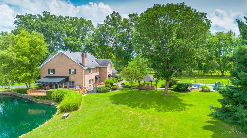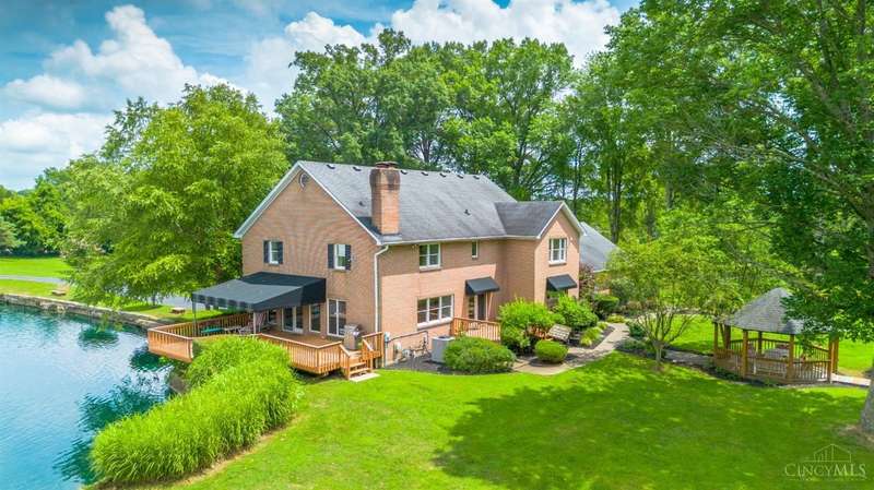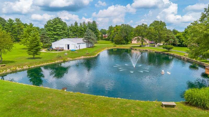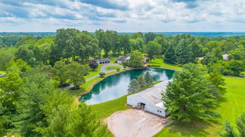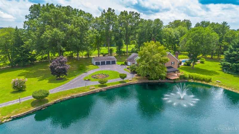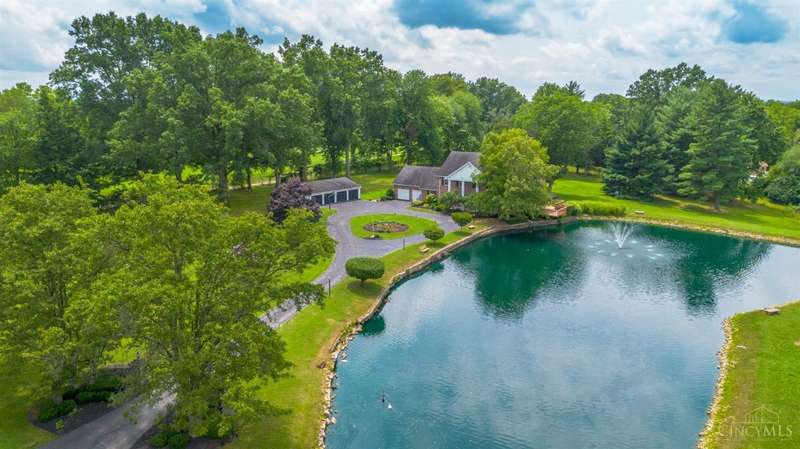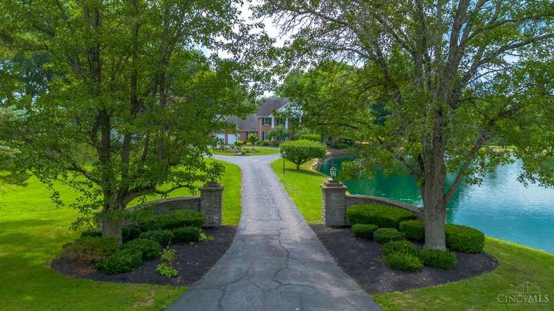 Welcome to your own private retreat, an exquisite 5.8 acre estate This beautifully Solid Built Custom Brick Home offers refined living with unmatched privacy, ideal for entertaining, multi generational living, or even hosting events. The possibilities are truly endless. Spacious and Open layout designed for comfort and sophistication. The heart of the home is a chef's dream; a gourmet eat in kitchen with large center island, custom cabinetry, and seamless flow into an oversized great room with stone fireplace, and walls of windows open to a large covered deck overlooking lake views. Outside, enjoy resort style amenities including a stocked pond with gazebo, built in pool with pond views, 40 x 100 pole barn and a private, tree lined rear yard bordering a golf course. A large deck offers the perfect spot for outdoor entertaining or peaceful unwinding surrounded by golf course & country feel with convenient access to I275, 30 minutes to downtown.