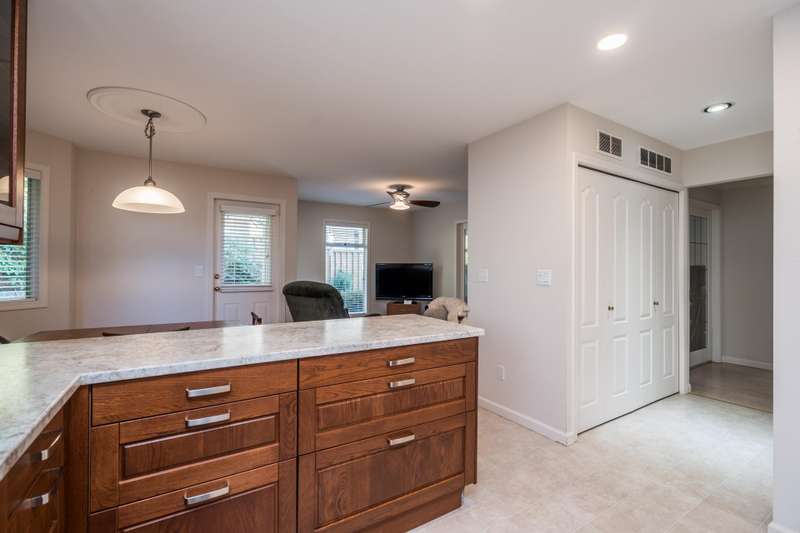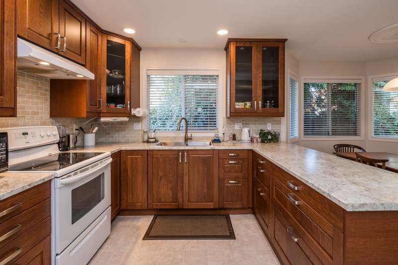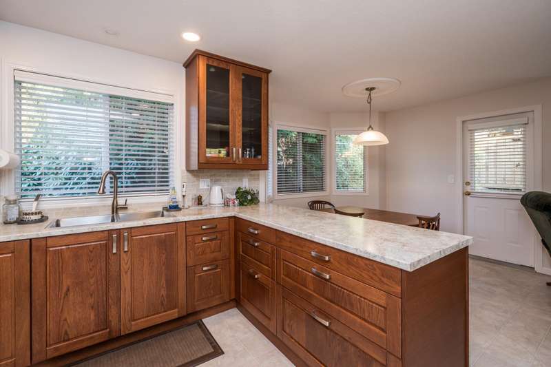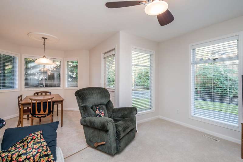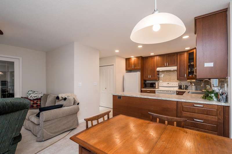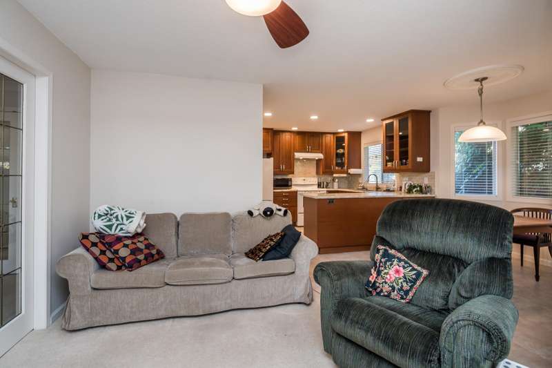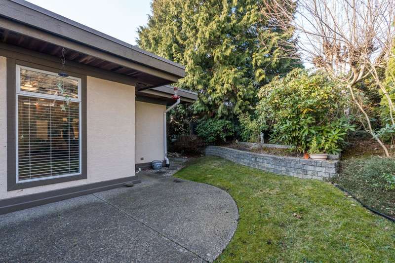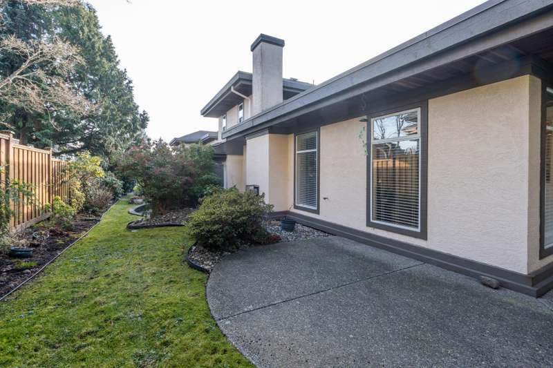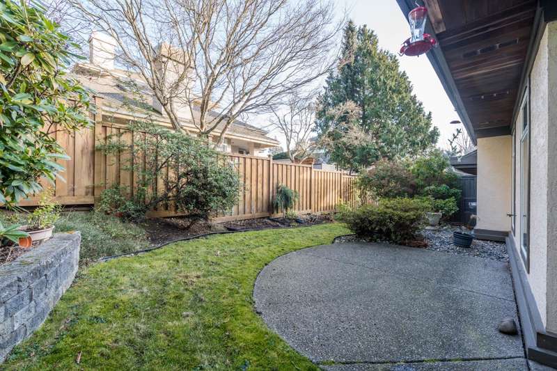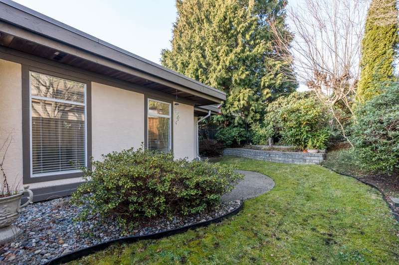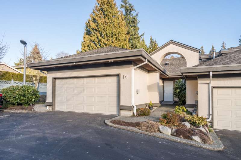 OCEAN PARK GROVE. This 2 bedroom, 2 bathroom end unit rancher style townhome offers a side-by-side double garage, private patio with lush landscaping, gas fireplace and desirable floorplan. Highly sought after and well maintained complex in the heart of Ocean Park just steps to shopping, banks, restaurants and a short drive to White Rock and Crescent Beaches. 55+ age restriction, 2 indoor cats allowed and no dogs. Open House Saturday October 4th 2-4pm.