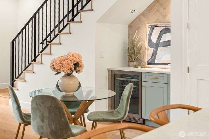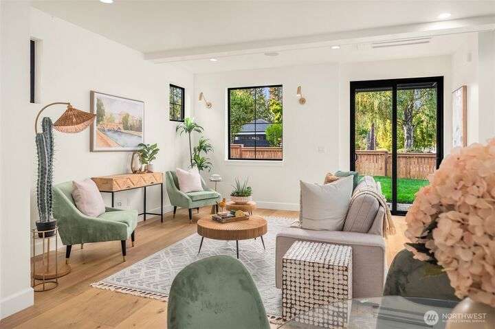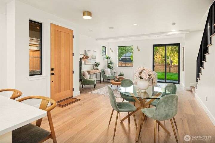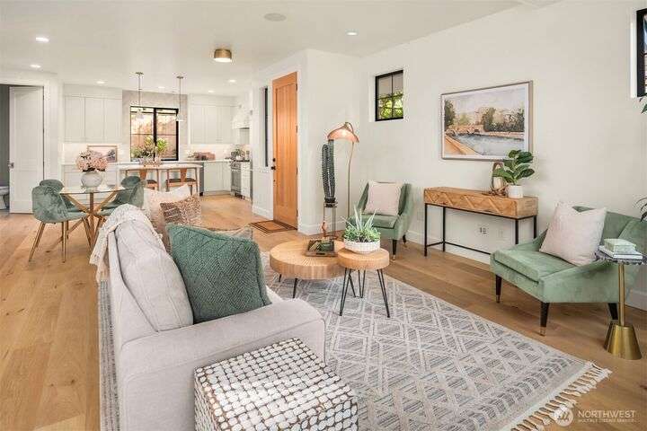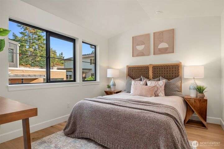 NEW MUST-SEE Cottage in West of Market! Located just a few steps from Juanita Bay Park & Boardwalk, this 2bd/2.5ba charmer by Granger & Co offers uncompromising quality & luxurious comfort with meticulously curated design. Bright & airy open concept great room boasts butlers bar and sliding doors that open to the patio & fully fenced yard. Gorgeous Chef's kitchen features quartz counters, Bedrosian tile, Belmont cabinets, & top-of-the-line appliances. Retreat upstairs to 2 bdrms w ensuite baths - and convenient laundry area. Spacious primary boasts private balcony, walk-in closet & sumptuous bathroom bathed in natural light thru vaulted ceilings & skylights with heated floors, double sinks & stunning fully-tiled shower. EC charging station.