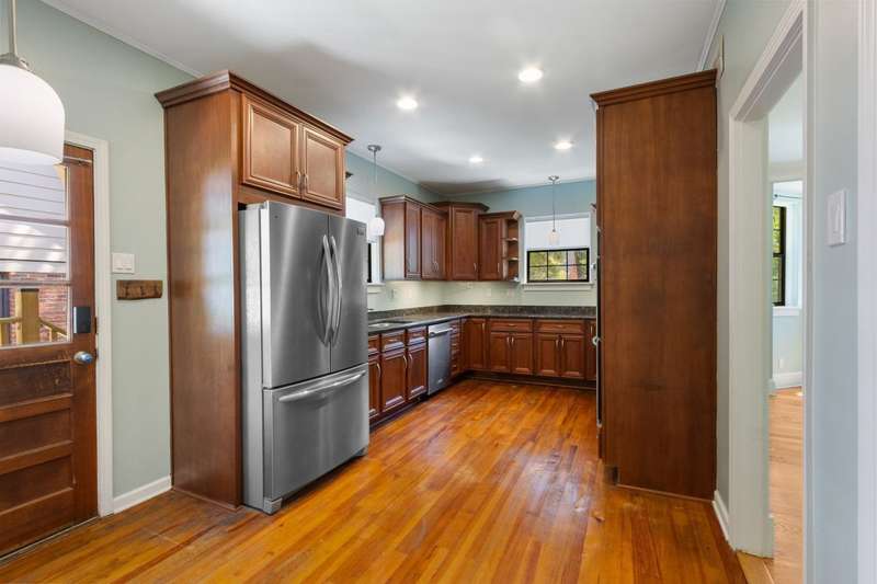 If you want to be impressed, then you need to come visit 1021 N. Barksdale St. in the heart of Vollintine-Evergreen Historic District! Nestled on a quiet, dead-end street, this spacious home offers a beautiful living room w/gas fireplace and gorgeous peg flooring. Arched entry leads you into the dining room w/it's built-in's and then into the new kitchen, which includes abundant granite counter space & custom cabinetry, a gas cooktop & double ovens, built-in micro, updated lighting & the fridge stays! There are four bedrooms to choose from, one with a wall of built-ins, and two full baths. Laundry closet features a stackable w/d (also stays!). The interior (& exterior) have been freshly painted, and hardwoods have been beautifully refinished. The fenced backyard is private & peaceful, offers a new deck w/sunshades & fan, a super nice storage shed, and a rare, 2-car detached garage! The driveway is long for plenty of off-street parking too! Roof '20; HVAC '18. What? YEP! Come see!