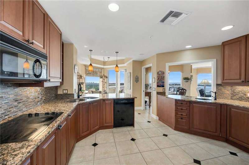 This fabulous spacious split floorplan, 17th floor residence, with upgrades, embodies the casual yet sophisticated lifestyle of SW Florida. Floor-to-ceiling sliding glass doors opening onto three west and south facing terraces provide spectacular views of Gulf of Mexico, Golf Courses and Estero Bay from every room! Watch the dolphins play in Estero Bay and enjoy fabulous sunsets over the Gulf of Mexico. Finishes include 18 inch tiles on the diagonal, crown molding, wood cabinetry with slide out shelving, granite counters. Aspiring chefs will love the spacious, centrally located kitchen with adjacent sun filled breakfast room. There are storm shutters on the screened terrace, and an infrared sauna in bathroom three. This residence comes with two parking spaces and separate storage area. Vistas offers 2 guest suites, updated communal areas with social and card rooms and fitness center. Vistas also has a spacious pool and spa with bar and grill area. Bonita Bay has 5 golf courses, 15 court tennis center 18,000 s.f. fitness center 8,000 s.f. Lifestyle spa & salon, full-service marina, Gulf front beach park, 6 restaurants, 15 pickle ball courts, crochet, bocce ball, canoeing, life enrichment center, 3 parks & more.