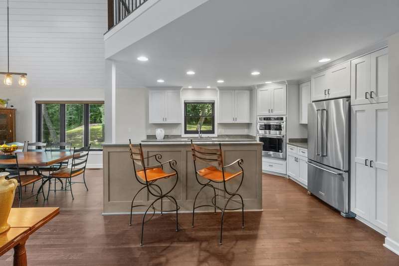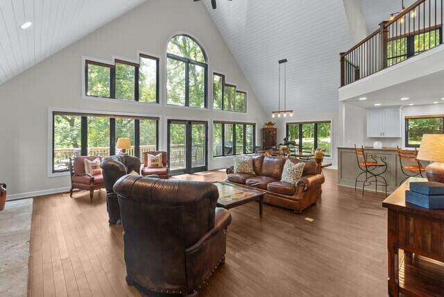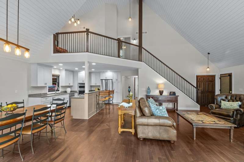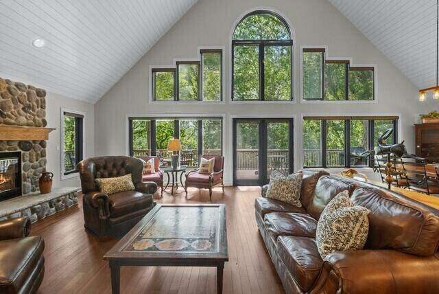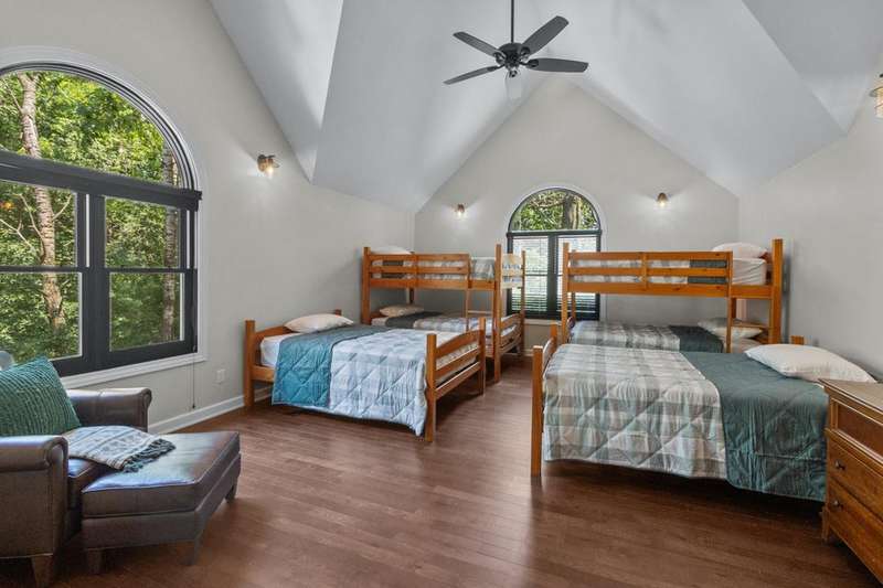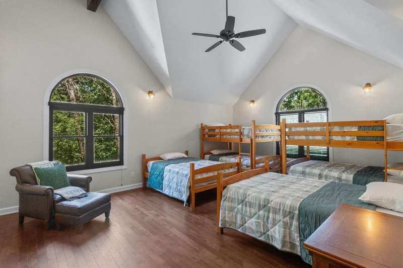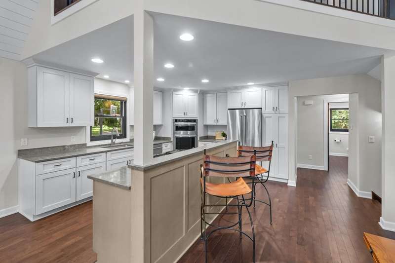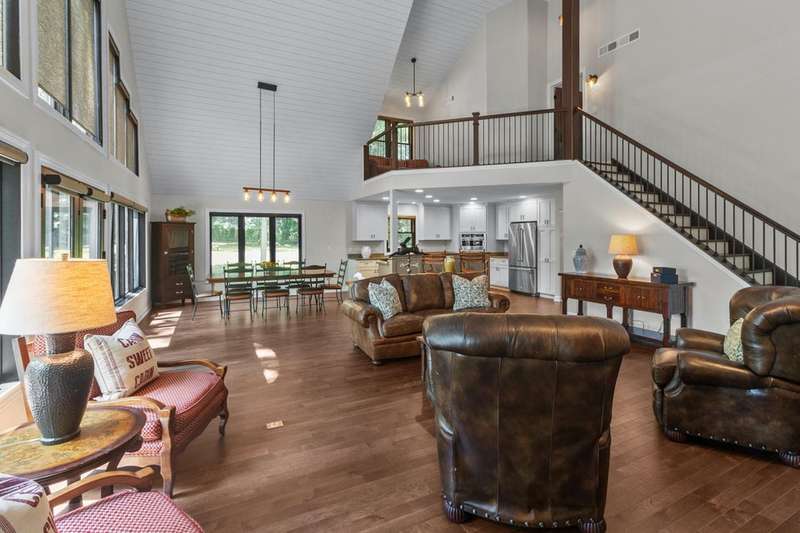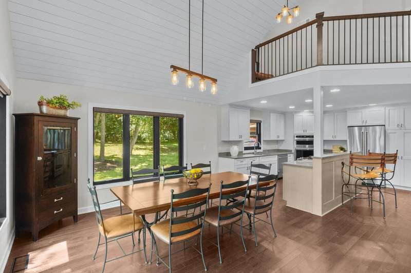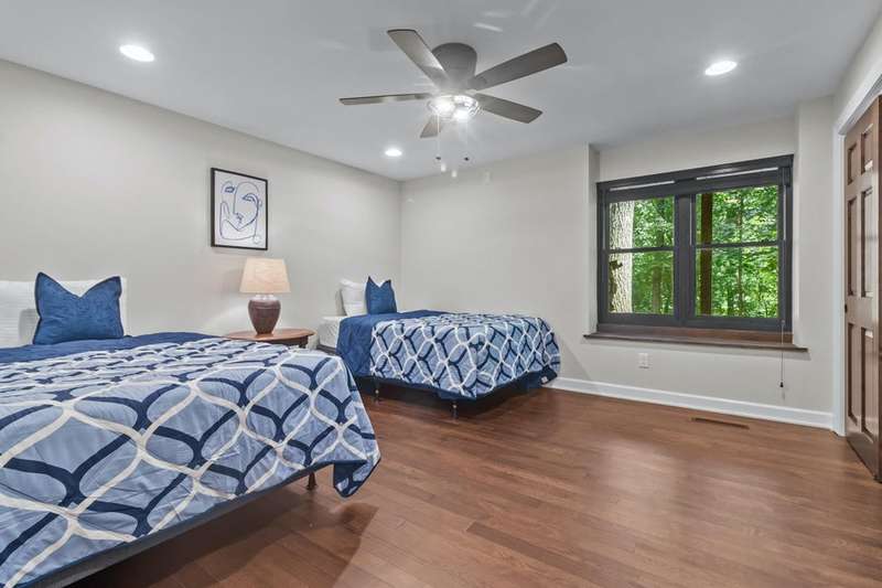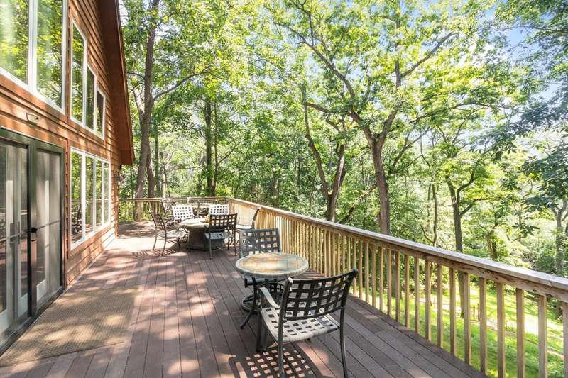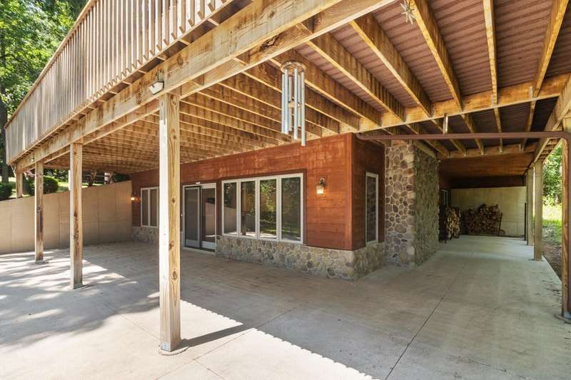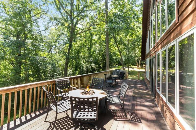 Beautiful Chalet Style home on over 5.5 wooded, glacier-carved terrain giving you the up north feel. This 4-bedroom 3 bath home has been renovated from top to bottom including all new windows throughout. An expansive full wall of windows fills the interior with natural light that walks out to the wrap around deck. 3 finished levels of space, 2 huge stone fireplaces. Upstairs, a versatile loft serves perfectly as a bunk room or a luxurious primary suite, complete with a private bath & walk-in closet. Lower-level offers a large family room with a walk-out wrap around patio. 4 car garage with an upper-level bonus room perfect for the kids or man cave. A custom stone path leads to your private dock/pier. In minutes you'll be on the sparkling waters of all sport Lake Beulah!!