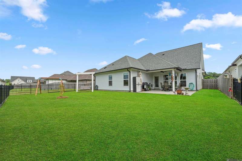 Lakefront Living in Cypress Lakes Estates – Central School District! Less than 3 miles from top-rated Central Schools. This beautifully designed home offers an open floor plan with custom details throughout, including large windows that flood the space with natural light and provide serene lake views. The kitchen is a chef’s dream, featuring granite countertops, a gas range with pot filler, stainless steel appliances, and an antique pantry door that adds charm and character. Enjoy meals in the adjacent dining area. The spacious primary suite offers dual vanities, a marble-tiled walk-in shower, and a soaking tub. Step outside to a fully fenced backyard on the lake, complete with a covered patio—perfect for entertaining or enjoying peaceful mornings by the water. Cypress Lakes Estates also includes a neighborhood playground and pavilion, with easy access to Baton Rouge via the Central Thruway. Don't miss this opportunity to enjoy lakefront living with convenience and style!