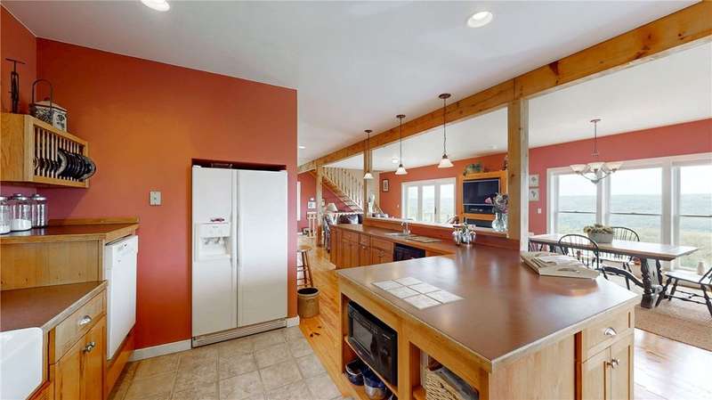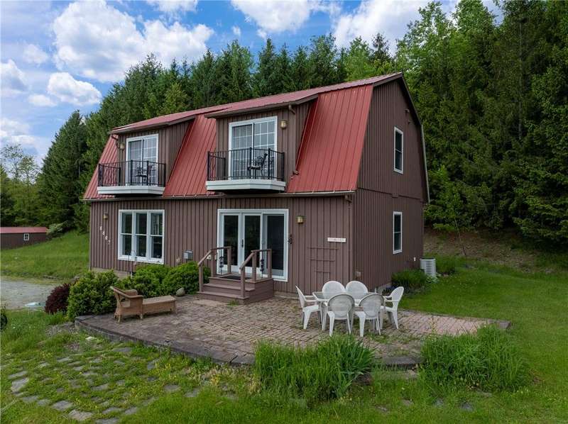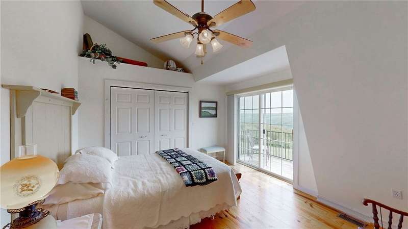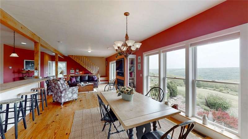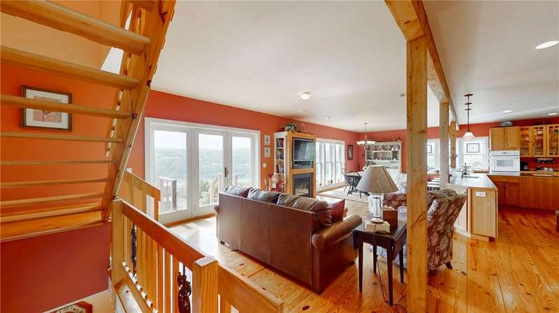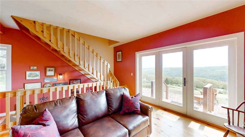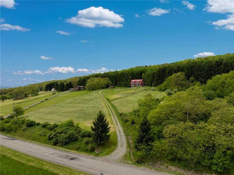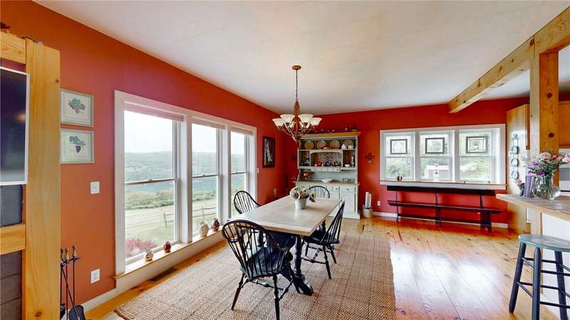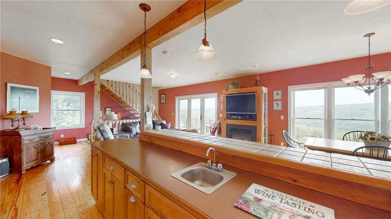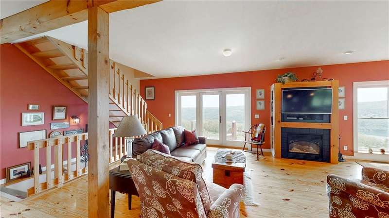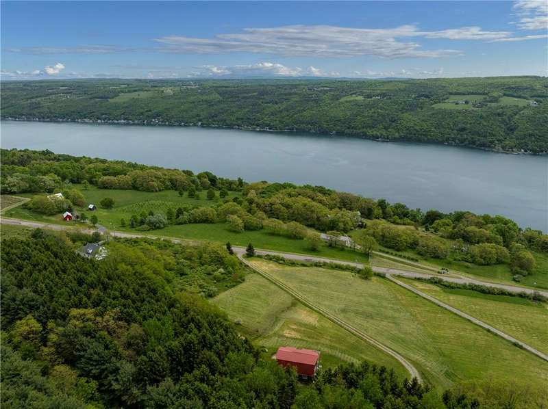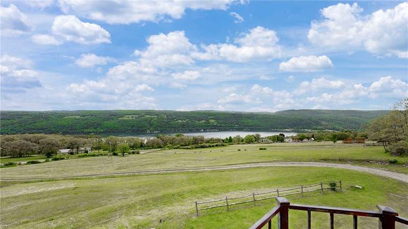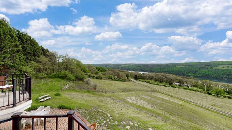 West Side up above Keuka Lake (the prettiest lake in New York State). A contemporary style home on 10 private acres. The Keuka Lake views are just stunning! The home was built in 2004 and has 2 full baths and 2 bedrooms which includes a large master bedroom. There is enough area to add a third bedroom. It has been extremely will designed with a great room combining living, kitchen and dining in an open floor plan. Lots of window space to take advantage of the breathtaking views. Wood floors throughout and a gas fire place. Basement has been partially finished which provides more living space and walks out into a 2-car garage. Spacious front patio and a back deck. The 10 acres does have several acres of woods which enhances the setting and privacy. A short drive to wineries, distillers, breweries and the Village of Hammondsport. (Assessment reflects current assessment)