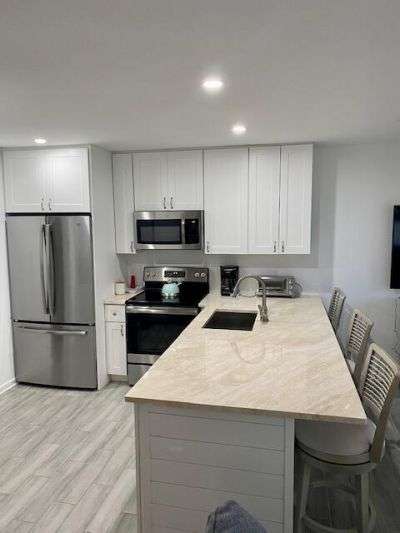 Completely renovated, beautifully furnished first floor, 1 bedroom 1.5 bath end unit condo just steps away from the beach! Basic cable, internet, water/sewer included in rent if seasonal/short term. 13% FL bed tax for leases less than 6 months. Monthly rates = Jan-April 2026 = $3800 / May 2026 = $2700 / June-Oct 2025 = $2200 / Nov-Dec 2025 $2000.Rented Feb. 2026 - March 30, 2026