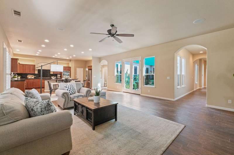 Nestled in a highly sought-after Buchanan Estate neighborhood in Clovis, this immaculate home showcases thoughtful design and exceptional care.One of Wathen Castanos' most sought-after floor plans, this home is designed around a tranquil atrium featuring a gentle fountain that fills every living space with natural light and warmth. Two spacious living areas offer the perfect setting for familygatherings and entertaining.. Enjoy surround sound with individual controls, a whole-house water filtration system, and exquisite attention to detail throughout.This exceptional home offers 3 bedrooms plus a possible 4th and 2.5 baths, thoughtfully designed for both elegance and comfort. The expansive owner's suite is a private retreat, featuring a cozy sitting area with direct backyard access, a spa-like bath with a soaking tub, dual vanities, a separate shower, and a generous walk-in closet. The gourmet kitchen is a chef's delight, showcasing a gas cooktop, double ovens, granite countertops, a spacious pantry, and custom pull-out drawers in every cabinet. For added convenience, the utility room is ideally situated just off the kitchen.Outdoor living shines with exquisite landscaping by Truxell Valentino, complemented by a built-in BBQ with sink, instant hot water, and a water filtration system. A spacious covered patio and fully irrigated drip system complete this impressive outdoor retreat.Additional features include a 3-car garage with sink and shelving, RV parking with a quality shop/shed, 58 owned solar panels, dual-pane Cascade windows with pull-down shades, 2 A/C units, and 2 water heaters (one brand new).All within the highly regarded Buchanan High School District.There are far too many special features to list. Discoverrefined living in one of Clovis's premier neighborhoods. Experience firsthand everything this exceptional home has to offer.