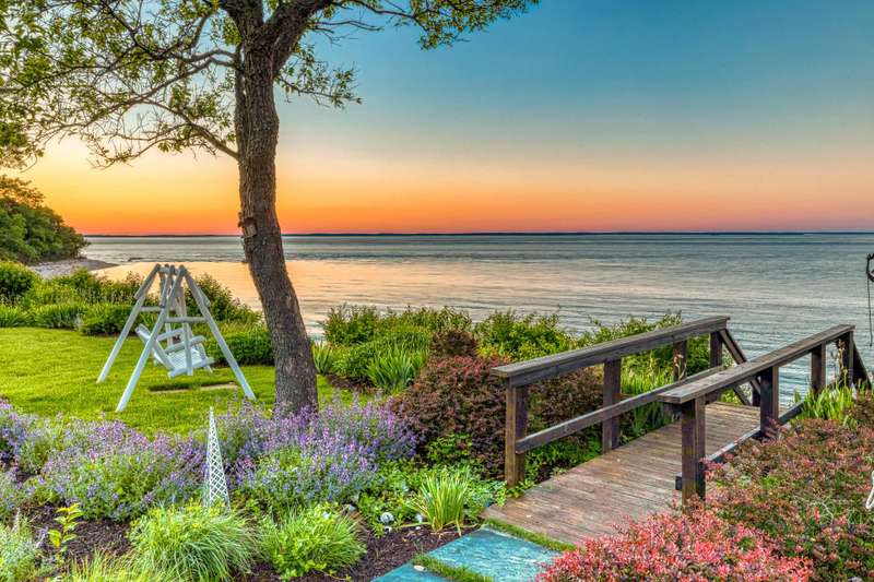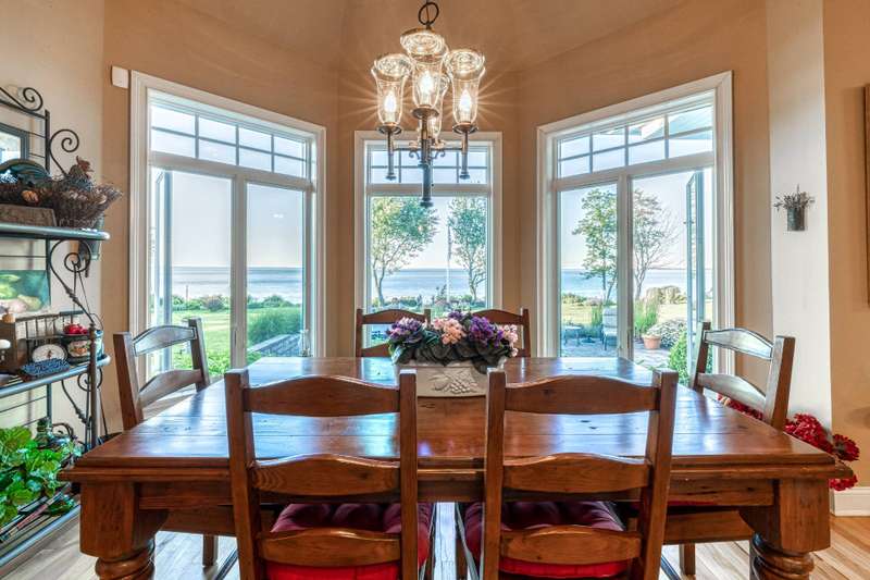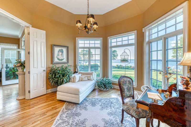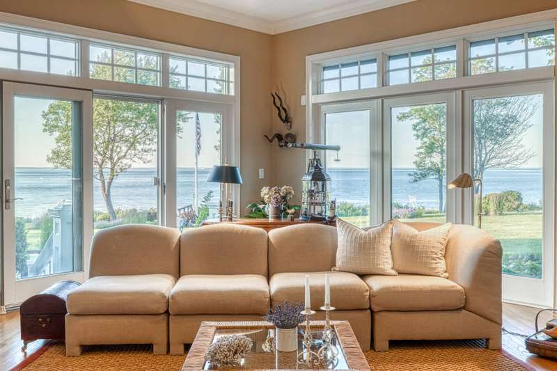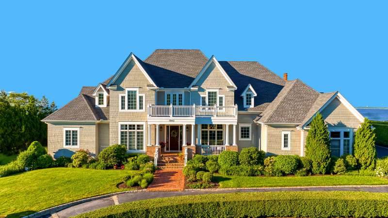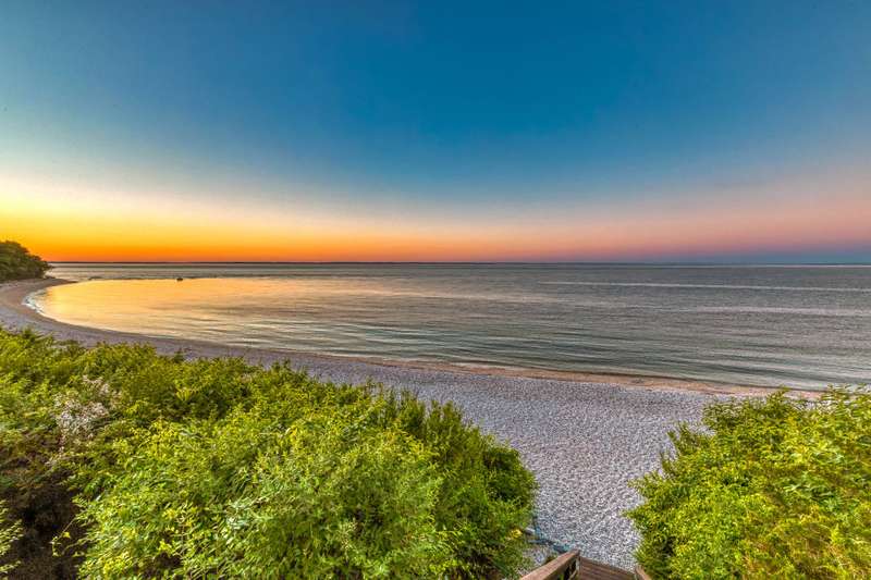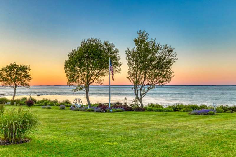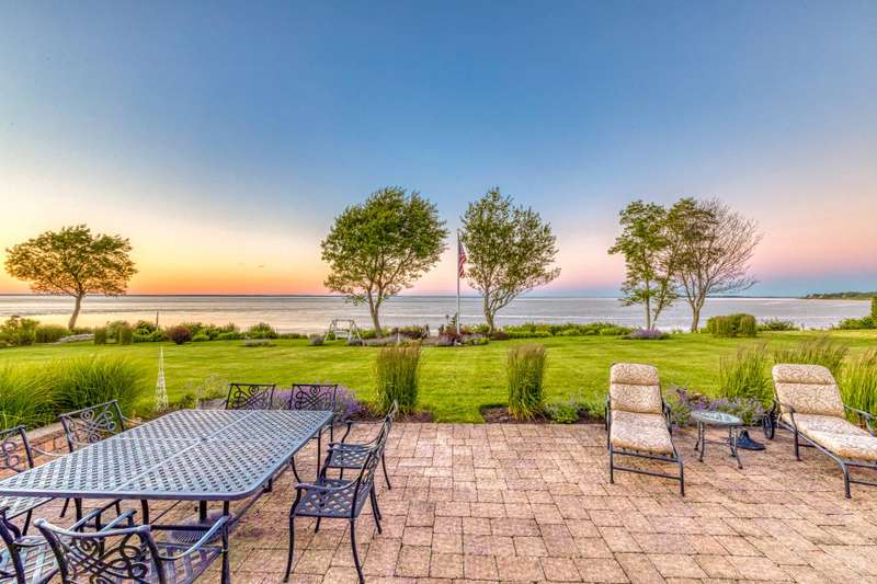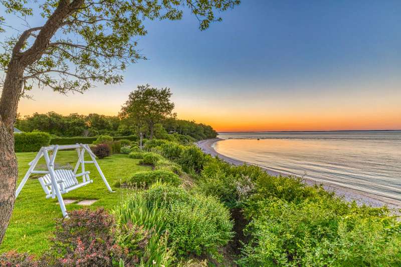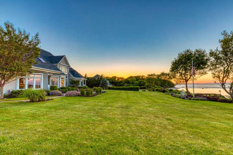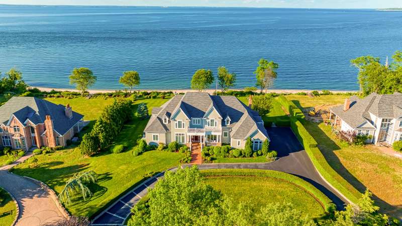 Orient, North Fork - Nantucket inspired waterfront estate with 130' private beach located at 1640 Grandview Drive, Orient. Featuring over 5,000 sf of upscale living space, this home takes advantage of the hilltop setting & encompasses sweeping views over the LI Sound. Luxury is apparent: spacious covered porch entry leads to foyer, LR w/clerestory windows overlooking the water & vaulted ceilings, large dining room, immaculate kitchen w/breakfast area overlooks the lush landscape of this coastal retreat. Open plan family room w/gas fp leads to waterside terrace, primary floor owner's suite w/fp, sunroom/sitting room & a home office w/private en suite bath (or 5th bedroom). Upstairs is found a large sitting room, billiard/family room, sewing/craft room, junior owner's suite w/full bath, plus an additional 2 bedrooms w/'Jack & Jill' bath. Immaculate and well-maintained, this 'estate' also features a wine cellar, full house generator, outdoor shower & other quality details not to be missed