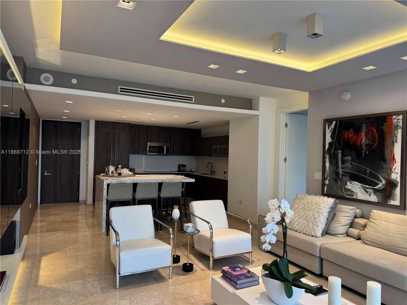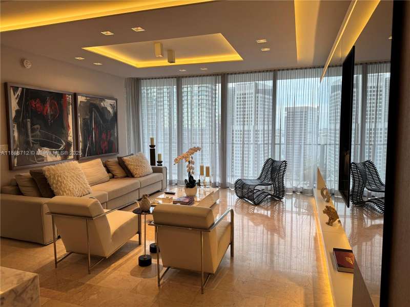Welcome to RISE condominium, the ultimate in luxury living right in the heart of Brickell and Brickell City Center. Enjoy amazing resort style amenities or entertain guests at your leisure! Fully furnished 1BR/1.5BA high floor eastern facing unit w/large balcony and views for miles. Custom furnishings by Restoration Hardware, sleek quarts counters, Bosch appliances + marble floors throughout. Bedroom suite appointed w/custom closet build-in's. RISE offers up to 4 complimentary daily guest valet spots and residents can enjoy ultra-luxury services year-round, including full-time doorman, concierge, pool, gym, spa, and theater room on site.