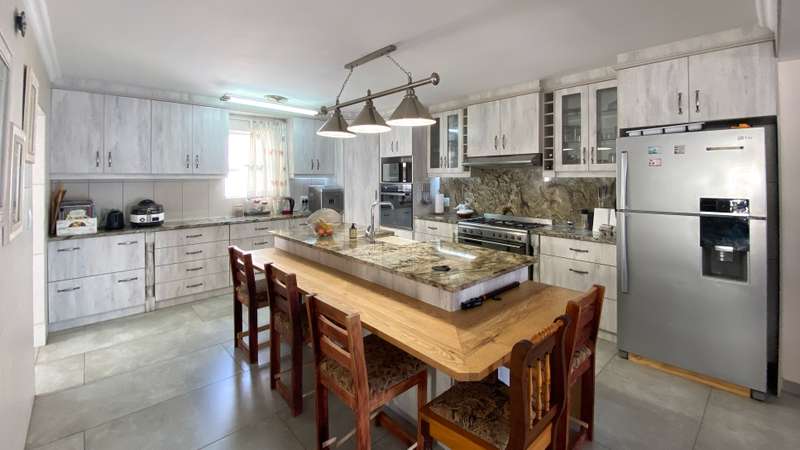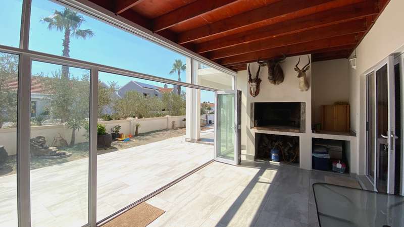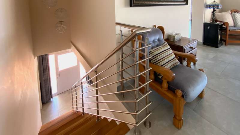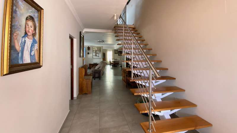 Embrace the Coastal Lifestyle Spacious and Elegant Living Open-Plan Living: Step into a spacious open-plan lounge, dining room, and gourmet kitchen, perfect for entertaining guests. Indoor-Outdoor Flow: The lounge area, featuring a cozy gas fireplace, seamlessly connects to the outside covered braai area, ideal for enjoying the outdoors. Gourmet Kitchen: The chef's dream kitchen boasts ample cupboards, marble countertops, a gas stove, and a scullery with extra storage space. Downstairs Retreat: Two generously sized bedrooms, each with built-in cupboards, air conditioners, and en-suite bathrooms, provide comfort and privacy. Versatile Hobby Room/Study: A spacious hobby room offers versatility as an arts and crafts area, a homeschooling classroom, or an extra guest room. Upstairs Haven: The upper level features a private lounge with another gas fireplace and a balcony with a built-in braai, perfect for enjoying serene views. Luxurious Master Suite: The master bedroom is a retreat with a walk-in closet, air conditioning, and a full en-suite bathroom featuring a stunning oval standalone bath and a balcony. Second Upstairs Bedroom: The second upstairs bedroom also includes built-in cupboards, air conditioning, a full en-suite bathroom, and access to the balcony. Modern Amenities and Security Double Garage: A double garage with automated doors provides secure parking. Energy Efficiency: An 7.5 kw inverter with a solar system (12 solar panels) ensures energy efficiency and sustainability. 24/7 Security: The island's 24/7 secured access provides peace of mind and an exclusive lifestyle. Your Island Paradise Awaits Don't miss out on this exceptional home that offers unparalleled luxury, comfort, and security on the beautiful Admiral Island. Contact us today to schedule a viewing.