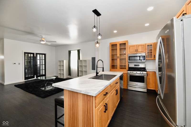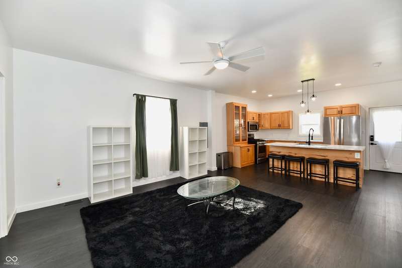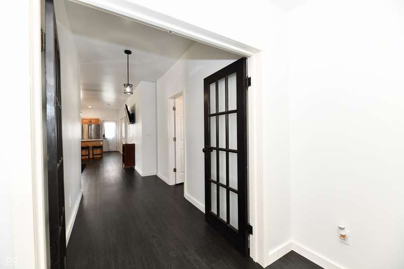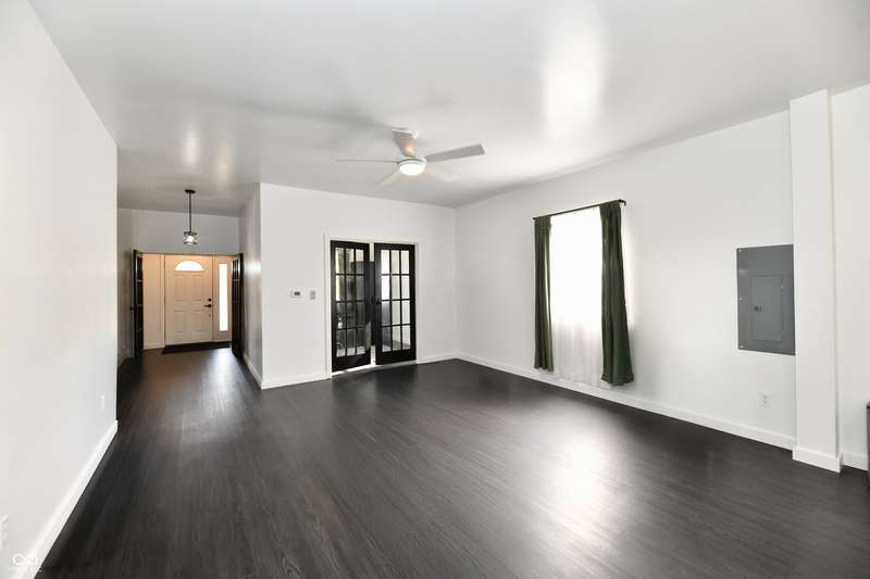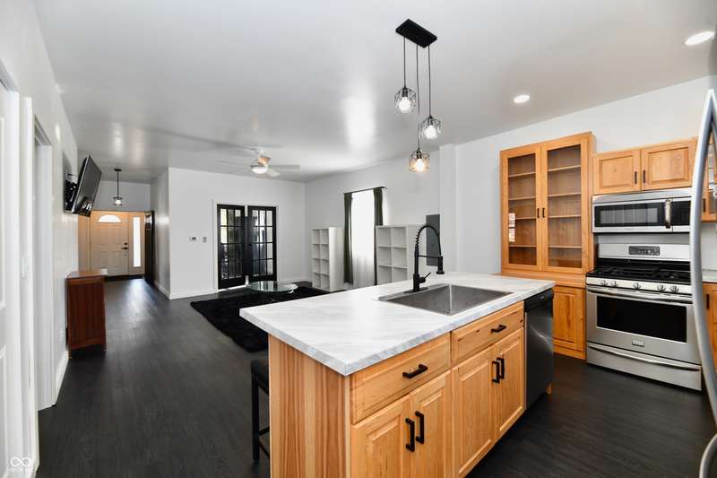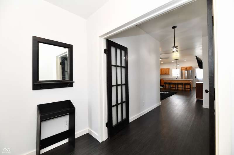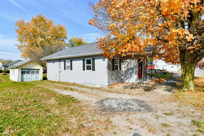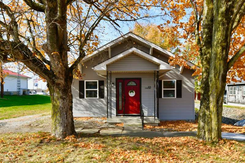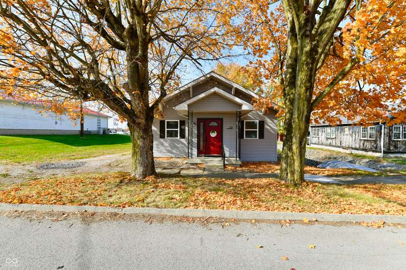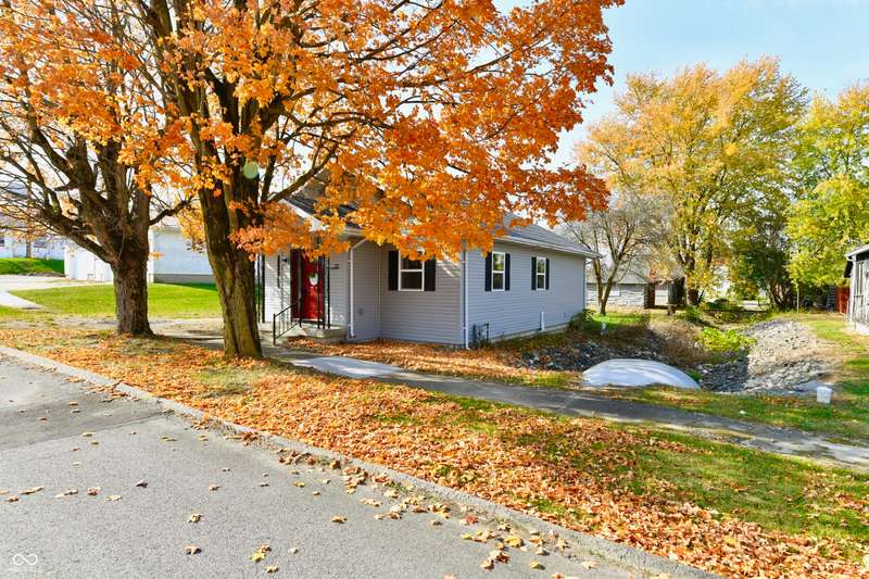 If you think this is cute on the outside, you should see the inside! This home has been TOTALLY redone, down to the studs. New roof, new siding, new windows, new flooring, new furnace, new tankless water heater, new bathroom, rebuilt kitchen including appliances, totally replumbed and rewired. The house was lifted and beams replaced underneath. An inspector's dream! The only project left to do is the garage. This home has 3 bedrooms or 2 bedrooms and an office, a large living area and an open kitchen with a center island that seats 4. The bathroom has access to the primary bedroom via pocket doors through the closet, and features a walk-in shower and a Bluetooth speaker light. A room air conditioner conveys with the home. Ceiling fans controlled by remotes. Outlets everywhere! Every room has a Cat5e Ethernet Jack that runs to a central point in the front office/bedroom. Located close to the heart of Frankton.