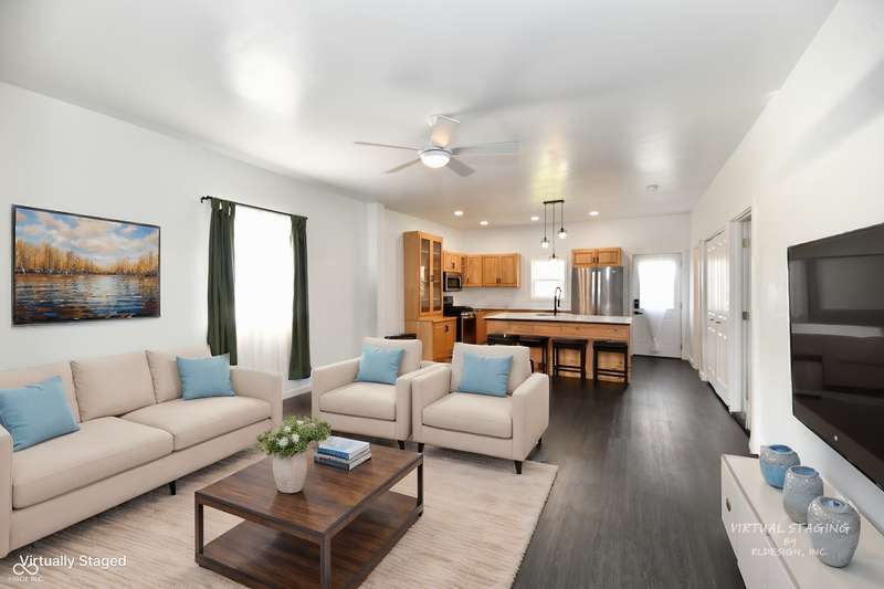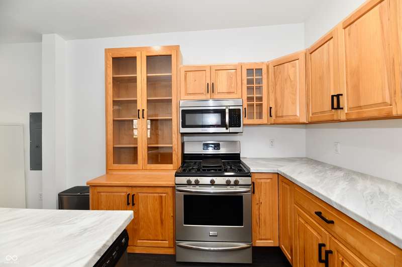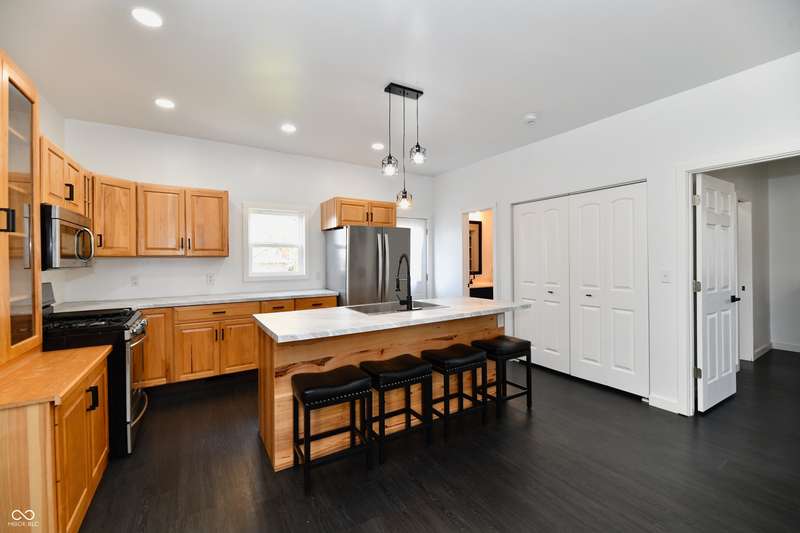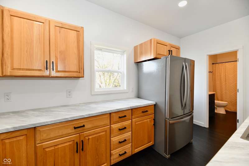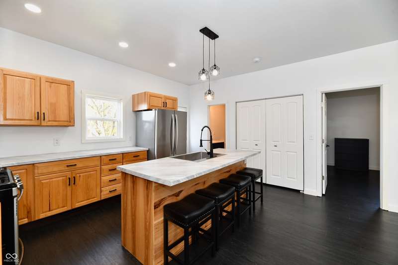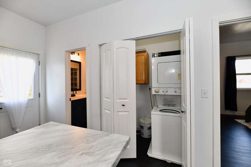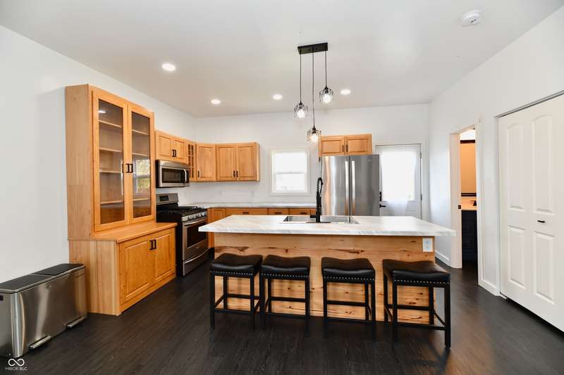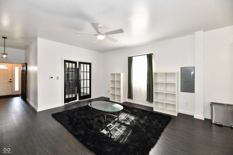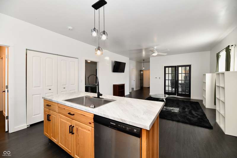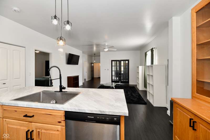 If you think this is cute on the outside, you should see the inside! This home has been TOTALLY redone, down to the studs. New roof, new siding, new windows, new flooring, new furnace, new tankless water heater, new bathroom, rebuilt kitchen including appliances, totally replumbed and rewired. The house was lifted and beams replaced underneath. An inspector's dream! The only project left to do is the garage. This home has 3 bedrooms or 2 bedrooms and an office, a large living area and an open kitchen with a center island that seats 4. The bathroom has access to the primary bedroom via pocket doors through the closet, and features a walk-in shower and a Bluetooth speaker light. A room air conditioner conveys with the home. Ceiling fans controlled by remotes. Outlets everywhere! Every room has a Cat5e Ethernet Jack that runs to a central point in the front office/bedroom. Located close to the heart of Frankton.