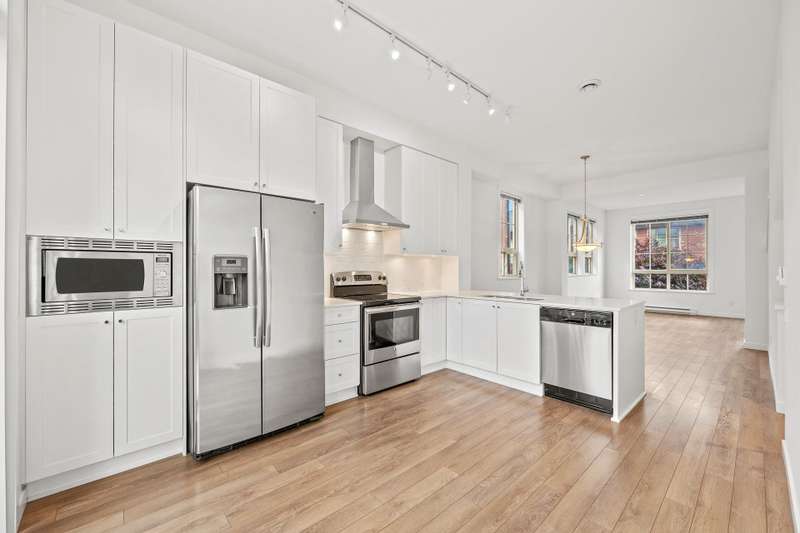 THE MORGAN - A classic Georgian-style townhome developed by the prestigious Mosaic. This bright and spacious 3-bedroom, 2.5-bath 1,314 sqft corner townhome feels like a detached home. Featuring high ceilings and an open-concept layout with large windows, it’s filled with natural light and offers plenty of space for family living. The modern kitchen flows seamlessly into the dining and living areas, perfect for entertaining. Upstairs, you’ll find 3 bedrooms including a relaxing primary suite with ensuite bath. Enjoy your patio off the kitchen for outdoor relaxation. Located in a highly sought-after area surrounded by parks, great schools, and the everyday amenities of Morgan Crossing. this home offers comfort, style, and convenience in one exceptional package.
