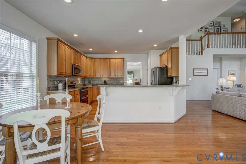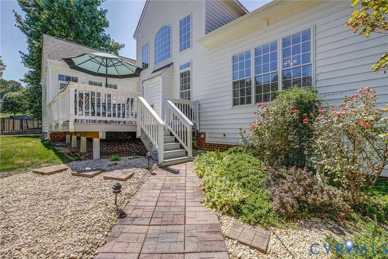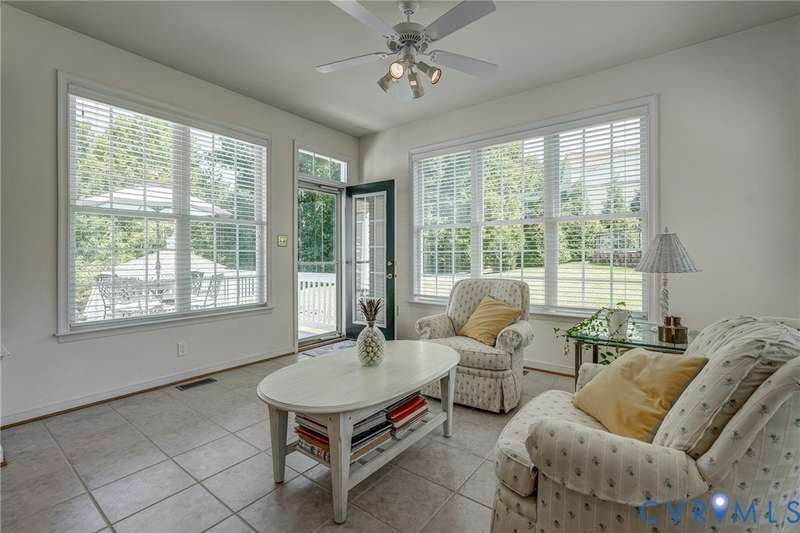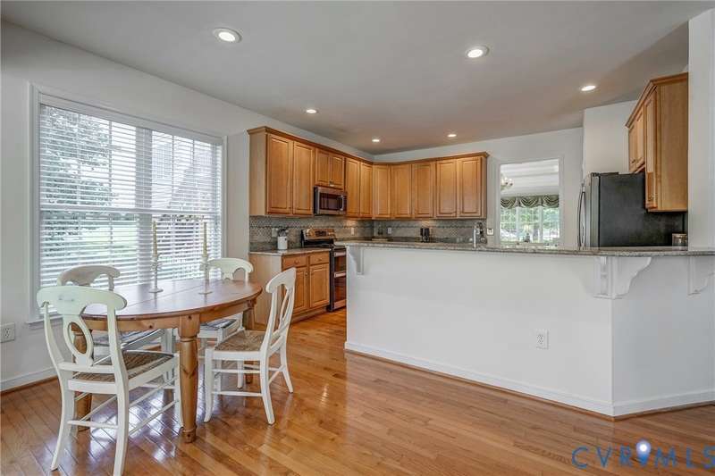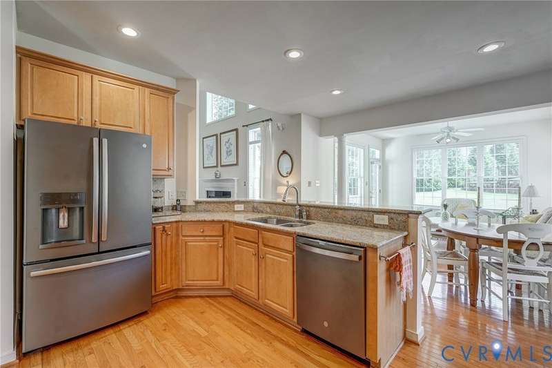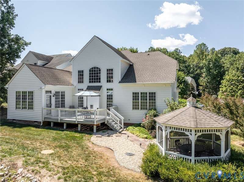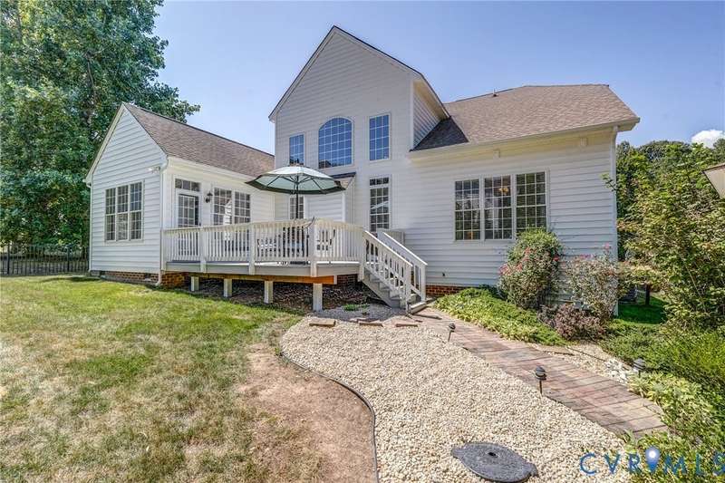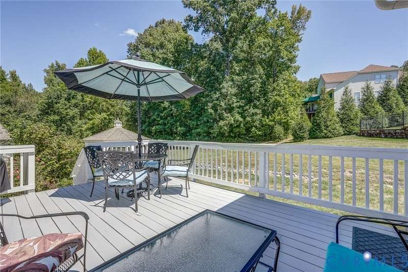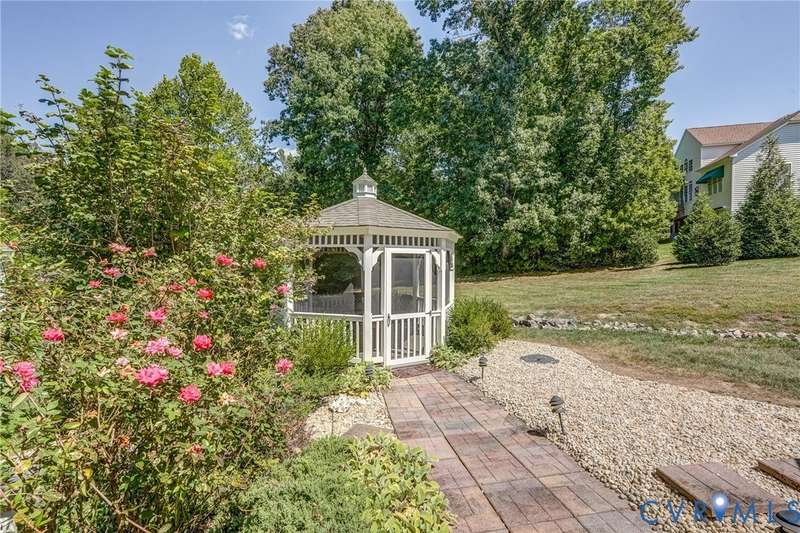 Maintenance free and first floor primary suite in The Parke at Manakin Woods in-move in condition with a private back yard and gazebo! The updated kitchen with maple cabinets, granite countertops, tile backsplash, newer GE appliances and freshly painted a light neutral. The modern floor plan offers a desirable open living and dining room for hosting large gatherings or neighborhood book club. The family room is open to the kitchen and is 2-story for maximum drama and light with soaring windows, gleaming hardwood floors and a gas fireplace in the center. The Bose surround system is perfect for enjoying a movie or the big game. The morning room is the perfect cozy spot to have morning coffee and read with fantastic private park-like views of the gazebo. Enjoy dinner under the stars in the gazebo in the peaceful and idyllic setting. The first floor primary suite is spacious with large windows and features a luxury five fixture bathroom with polished chrome framed glass shower door and soaking tub. The second floor has two large bedrooms and a convenient full bath plus two walk-in insulated storage rooms. The Parke at Manakin Woods offers social gatherings and neighbors love to walk their dogs to the central gazebo at the entrance. Perimeter woodland walking trail. Option to join the Manakin Woods Recreation Center with its Lake Helen for boating, boat storage and fishing and new pickleball and tennis courts. If you're downsizing, you'll love living on the less congested River Road West corridor just minutes from health care providers, pet services, dining and shopping at West Creek and Short Pump. Five minutes from the area's best country and golf clubs. One of the lowest monthly assessments in the Richmond area for a maintenance free lawn. Goochland County taxes are the lowest in the Richmond Region too! The Parke at Manakin Woods was built by Eagle Construction and offers the best value in maintenance free living for the best location in the Richmond area. The floor plan is the Maymont.