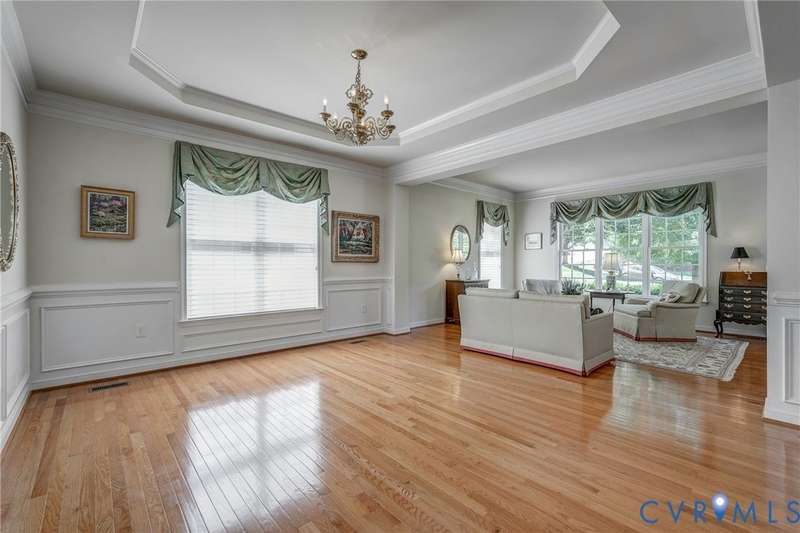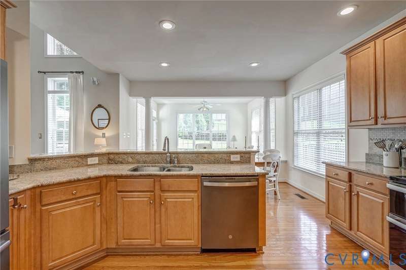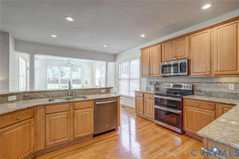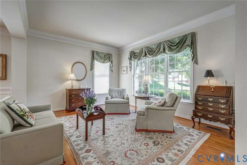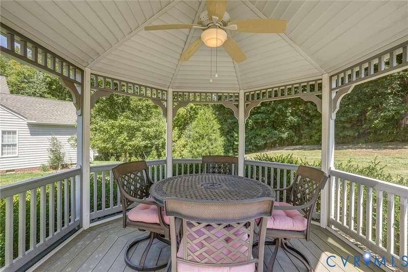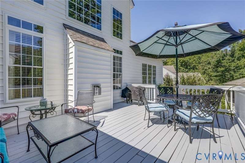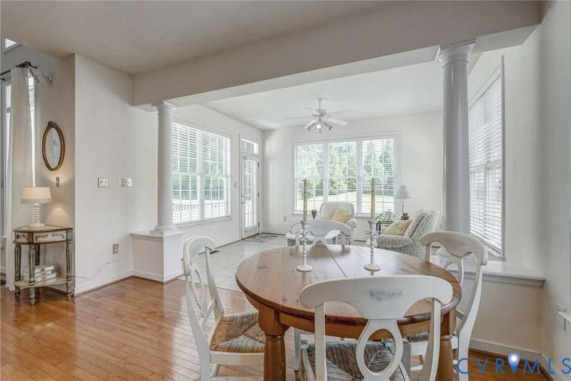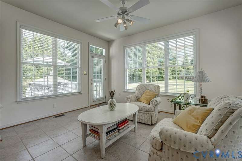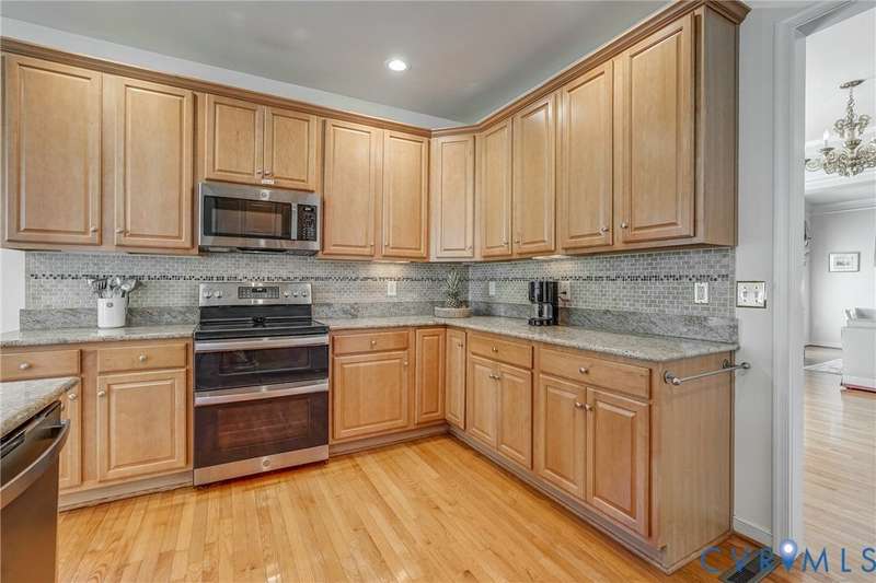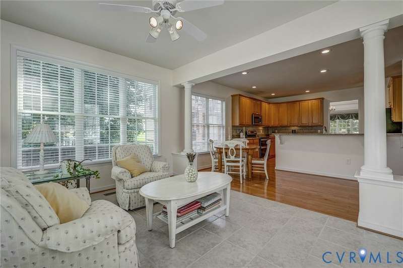 Maintenance free and first floor primary suite in The Parke at Manakin Woods in-move in condition with a private back yard and gazebo! The updated kitchen with maple cabinets, granite countertops, tile backsplash, newer GE appliances and freshly painted a light neutral. The modern floor plan offers a desirable open living and dining room for hosting large gatherings or neighborhood book club. The family room is open to the kitchen and is 2-story for maximum drama and light with soaring windows, gleaming hardwood floors and a gas fireplace in the center. The Bose surround system is perfect for enjoying a movie or the big game. The morning room is the perfect cozy spot to have morning coffee and read with fantastic private park-like views of the gazebo. Enjoy dinner under the stars in the gazebo in the peaceful and idyllic setting. The first floor primary suite is spacious with large windows and features a luxury five fixture bathroom with polished chrome framed glass shower door and soaking tub. The second floor has two large bedrooms and a convenient full bath plus two walk-in insulated storage rooms. The Parke at Manakin Woods offers social gatherings and neighbors love to walk their dogs to the central gazebo at the entrance. Perimeter woodland walking trail. Option to join the Manakin Woods Recreation Center with its Lake Helen for boating, boat storage and fishing and new pickleball and tennis courts. If you're downsizing, you'll love living on the less congested River Road West corridor just minutes from health care providers, pet services, dining and shopping at West Creek and Short Pump. Five minutes from the area's best country and golf clubs. One of the lowest monthly assessments in the Richmond area for a maintenance free lawn. Goochland County taxes are the lowest in the Richmond Region too! The Parke at Manakin Woods was built by Eagle Construction and offers the best value in maintenance free living for the best location in the Richmond area. The floor plan is the Maymont.