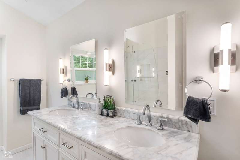 Location is everything! Discover your sanctuary in this inviting single-level home, perfectly situated in a peaceful cul-de-sac just moments from the serene Eagle Creek Reservoir. This 2-bedroom, 2-bathroom gem in Trophy Club welcomes you with an open, light-filled layout, where a stunning bay window creates a cozy corner for reading or savoring morning coffee. The home boasts modern finishes throughout, with a newly renovated primary en-suite that elevates everyday luxury. Step outside to a spacious, freshly painted deck and paver patio, shaded by mature trees-perfect for entertaining or relaxing in your private oasis. A two-car garage and ample storage provide practicality, while the home's proximity to I-465/I-74 ensures easy access to nearby amenities without sacrificing tranquility. More than just a house, this is a warm, stylish retreat ready to become your forever home!