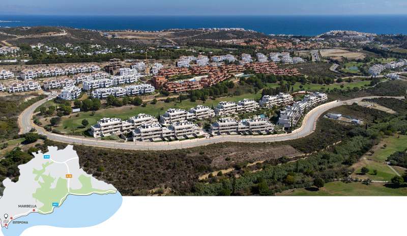 Set next to one of the well-known golf resorts of the Costa del Sol the development is also close to many social and local amenities. The wonderful sandy beaches are 2 km away from the project. The residential complex surrounded by nature and golf is just 15 minutes away from Estepona, 30 minutes away from Puerto Banús, 35 minutes away from Marbella and Algeciras, 40 minutes away from Gibraltar Airport, 50 minutes away from Fuengirola, and 1 hour from International Malaga Airport.