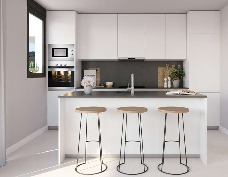 The development offers modern apartments making the most of natural light and scenic vistas, inviting to contemplate the surrounding landscape, including breathtaking sea views in select units. These apartments boast functional and contemporary layout of the interiors with exceptional quality in finishes. Expansive living and dining areas seamlessly merge with generous balconies, offering an abundance of light. The apartments will be delivered with open-plan kitchens, equipped with energy-efficient appliances.