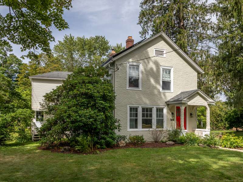Classic three bedroom colonial situated in desirable, low-traffic neighborhood one block from Litchfield Green - with one bedroom in-law apartment. Main house has primary bedroom with full, remodeled bathroom on main level, along with kitchen and family room, living room with wood burning fireplace and dining room. Hardwood floors throughout and interior walls recently re-plastered for soft, modern look. Full bathroom and two additional bedrooms on upper level. Large back yard with space for gardening and possible pool site. Side patio. Two car detached barn/garage with shed. Home has stucco exterior and plaster interior walls, very efficient for older home. BEST OF BOTH WORLDS - walk to town for shopping, restaurants, library AND easy access to White Memorial trail system and Greenway for bicycling. RARELY do you find an impeccable TURN-KEY in-town home. VERY special. In-law apartment currently rented for $800 per month. Tenant in place. Viewable on second showing only.
