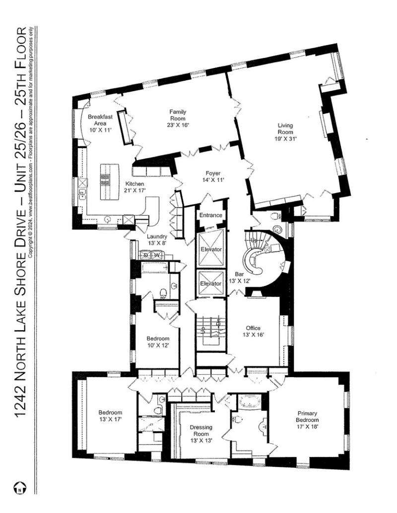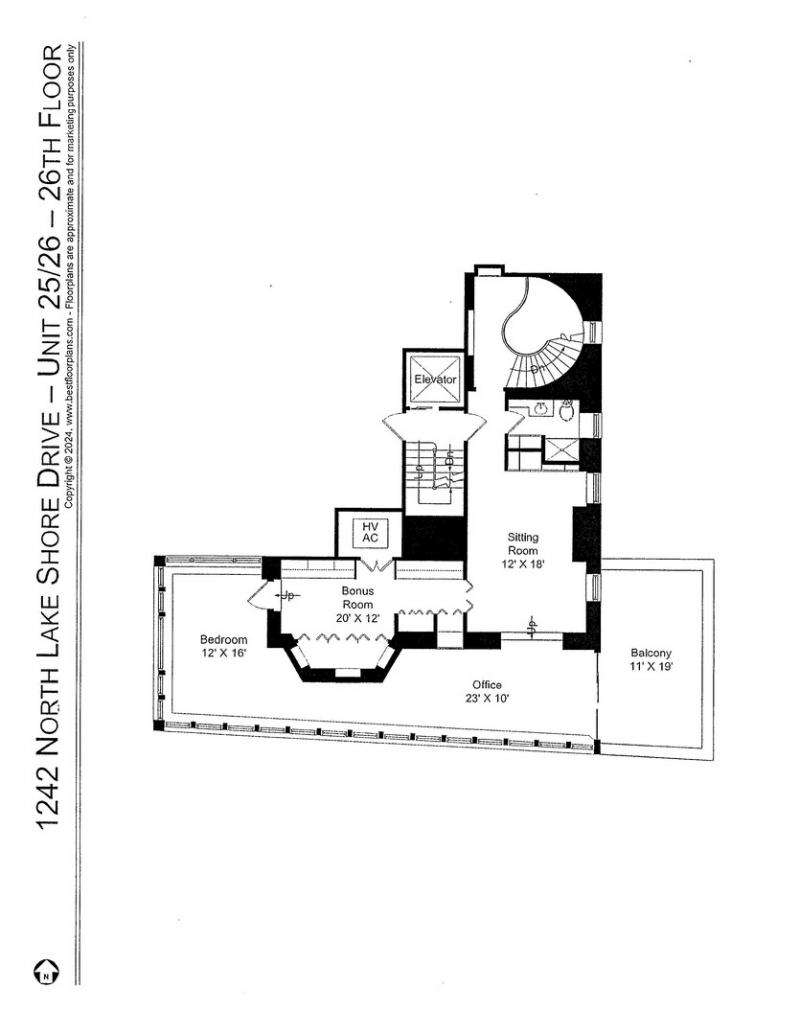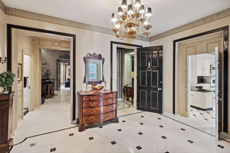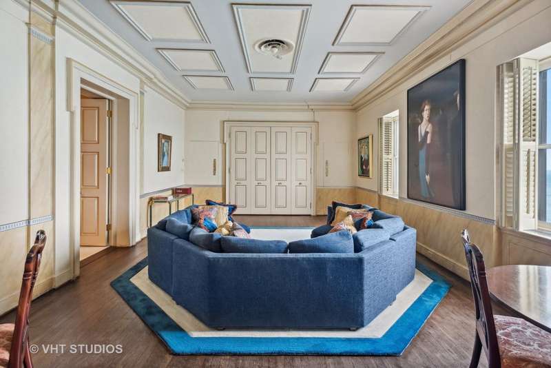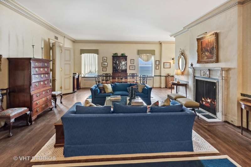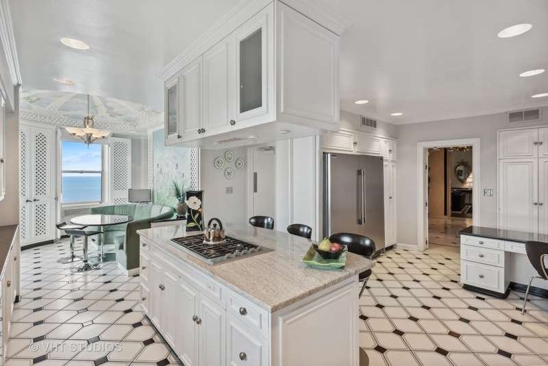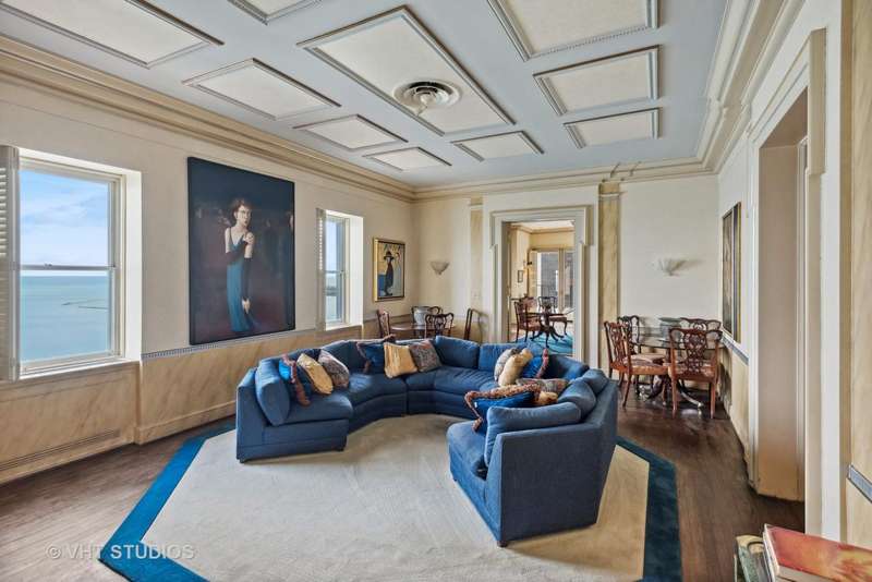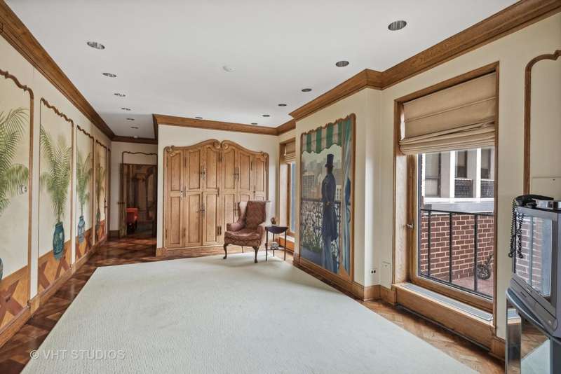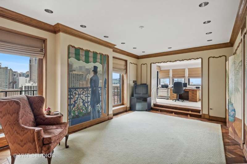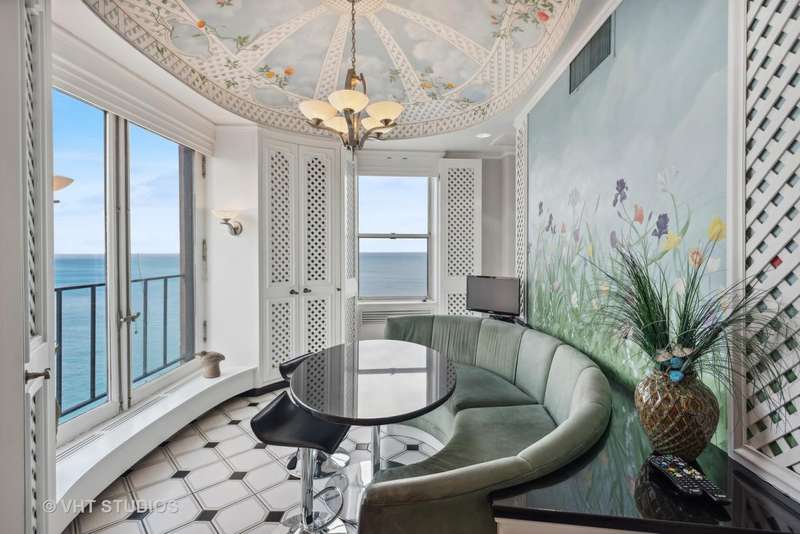 Huge 5327 sf duplex home with a 200+ sf terrace. Former home of Samuel Insul and Ray Kroc- offers panoramic wrap around views of lake and city. Home needs some updating but is priced accordingly. Amazing mural commissioned by Ray and Joan Kroc graces the circular stairway that leads to the second floor. Wood burning fireplace in the living room. Huge modern kitchen and a breakfast room with a wonderful lake view from the built-in banquette. Great home for entertaining and large enough for a family. Parking options close by.