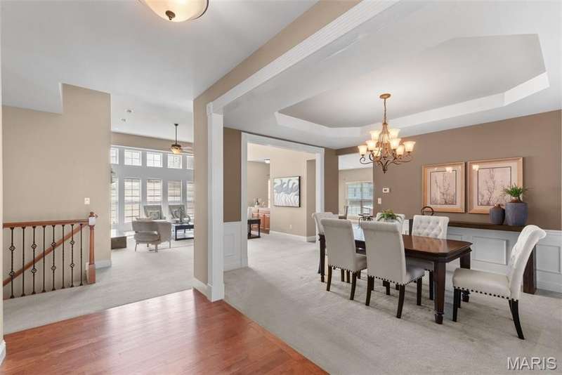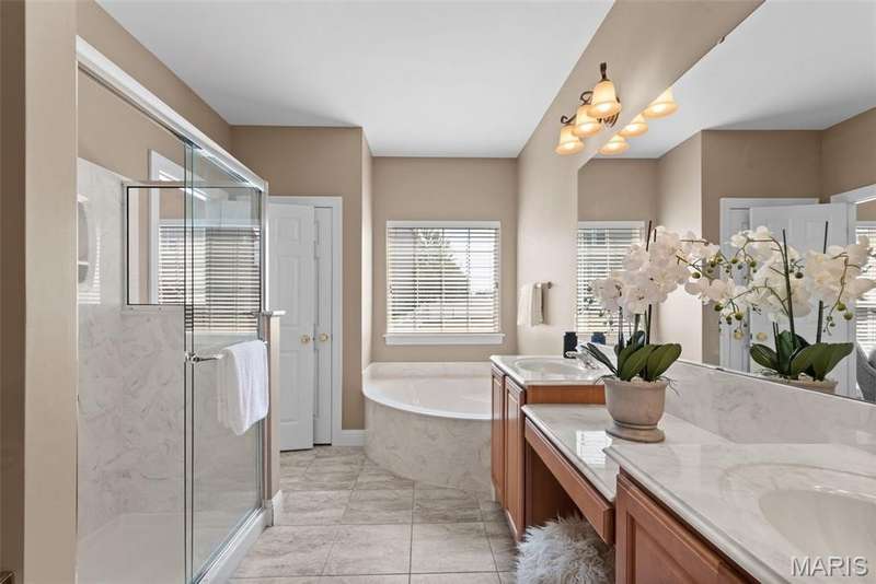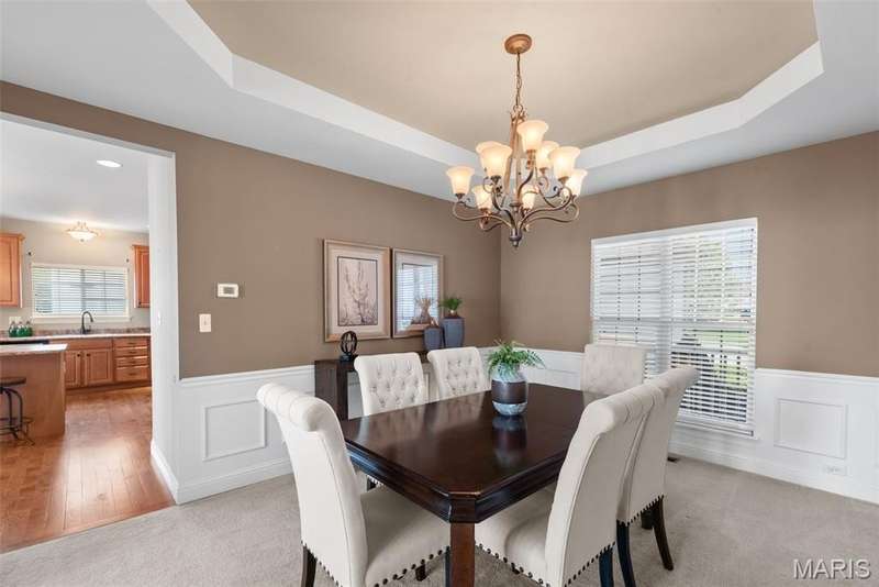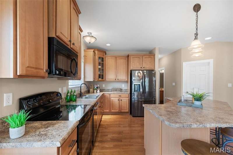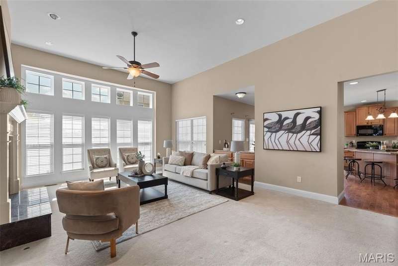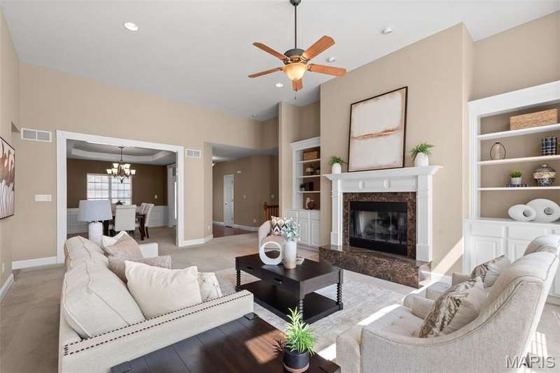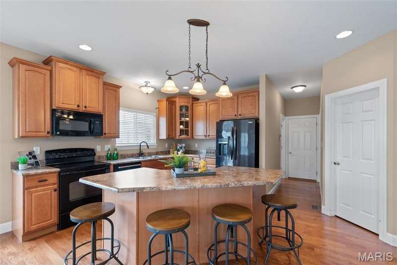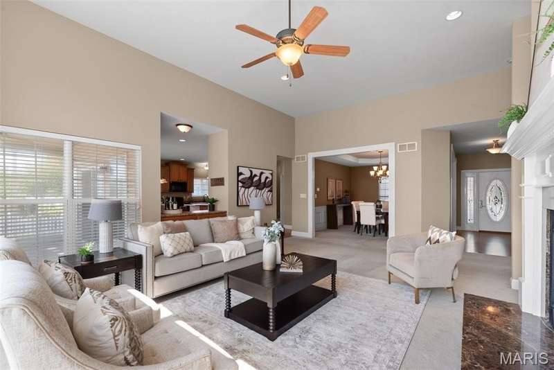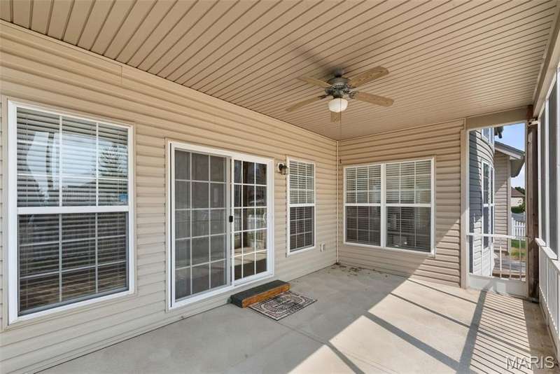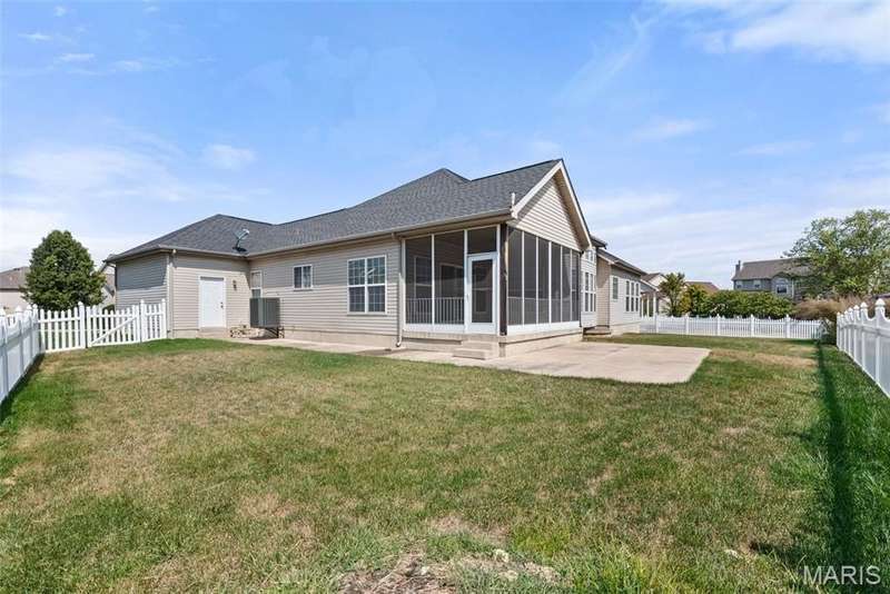 Welcome to this beautifully maintained 4-bedroom, 3.5-bath ranch offering over 2,400 sq. ft. of living space in the highly rated Wentzville School District. This beautiful home with great flow combines comfort and function with an inviting open floor plan, vaulted ceilings, and a cozy gas fireplace. The kitchen offers lots of gathering room and ample storage, while the adjoining separate dining and living areas make entertaining a breeze. Step out to the screened-in porch, perfect for relaxing year-round. Main floor laundry plus 3 bedrooms complete the first floor; the partially finished lower level adds even more living space with a fourth bedroom, full bath, and room for recreation plus ample storage. Additional highlights include a 3-car garage, luxury vinyl plank flooring, ceiling fans, in-ground sprinkler system. With thoughtful details throughout and an ideal setting close to schools, shopping, and dining, this home checks all the boxes for space, convenience, and comfort.